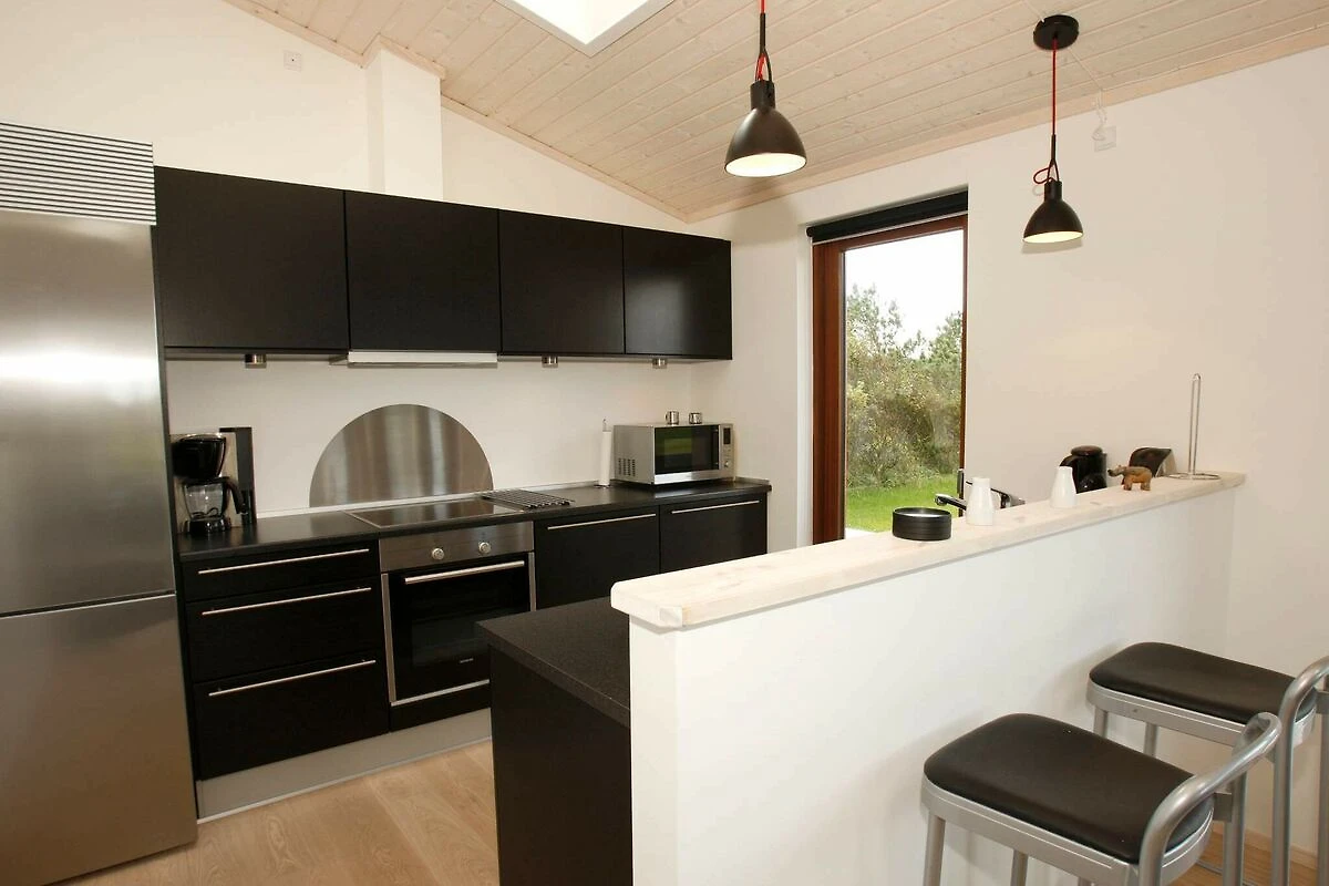 Angolo cottura(mobile cucina(elettrico), cappa aspirante, caffettiera, forno a microonde, lavastoviglie, frigorifero, congelatore(60-99L), lavatrice), Soggiorno/camera da letto(TV(satellite, canali televisivi tedeschi, canali TV danesi), lettore DVD, lettore CD, impianto stereo, seggiolone), Camera da letto(letto matrimoniale, letto per bambini), Camera da letto(letto matrimoniale), Camera da letto(letto singolo, 2x letto a castello), Bagno(sotto pavimento)(vasca o doccia, lavabo, WC), Bagno(sotto pavimento)(lavabo, WC), vasca idromassaggio(all’interno), riscaldamento(elettrico), terrazza(85 m2), terrazza(coperto, 16 m2), barbecue, tavolo per pulire il pesce, termopompa aria-aria