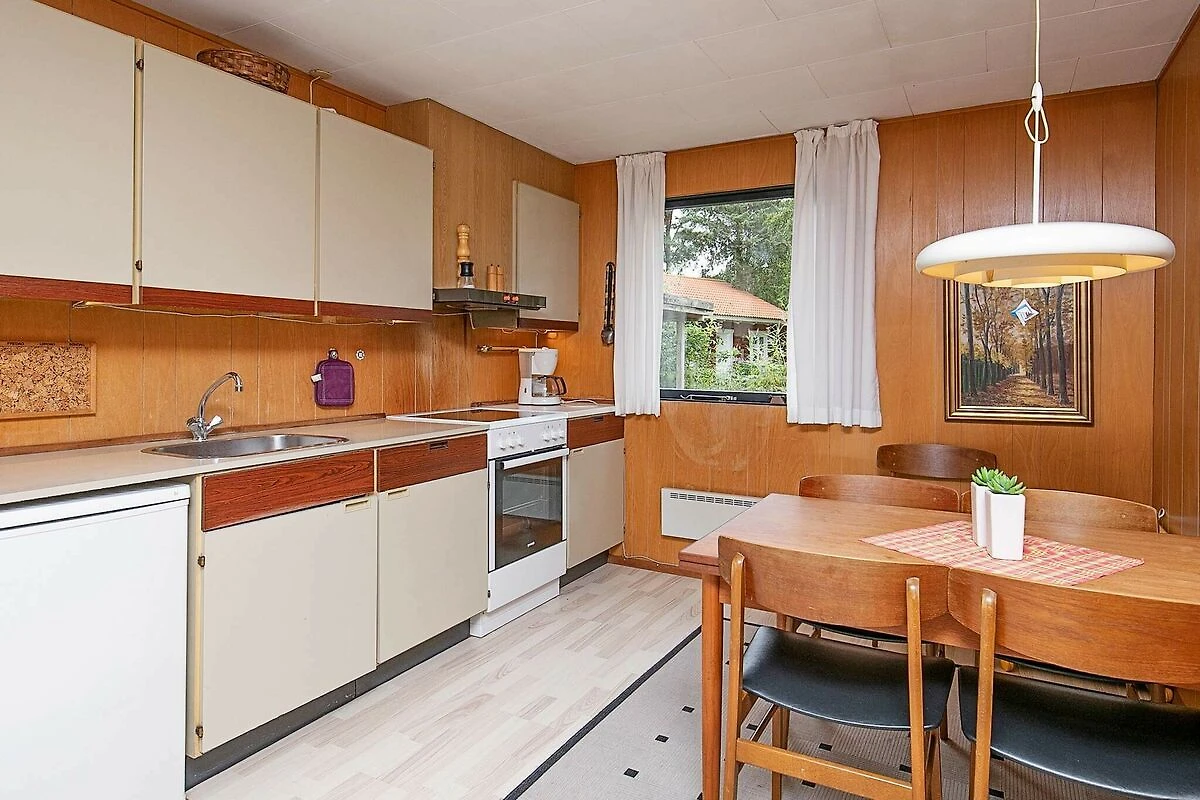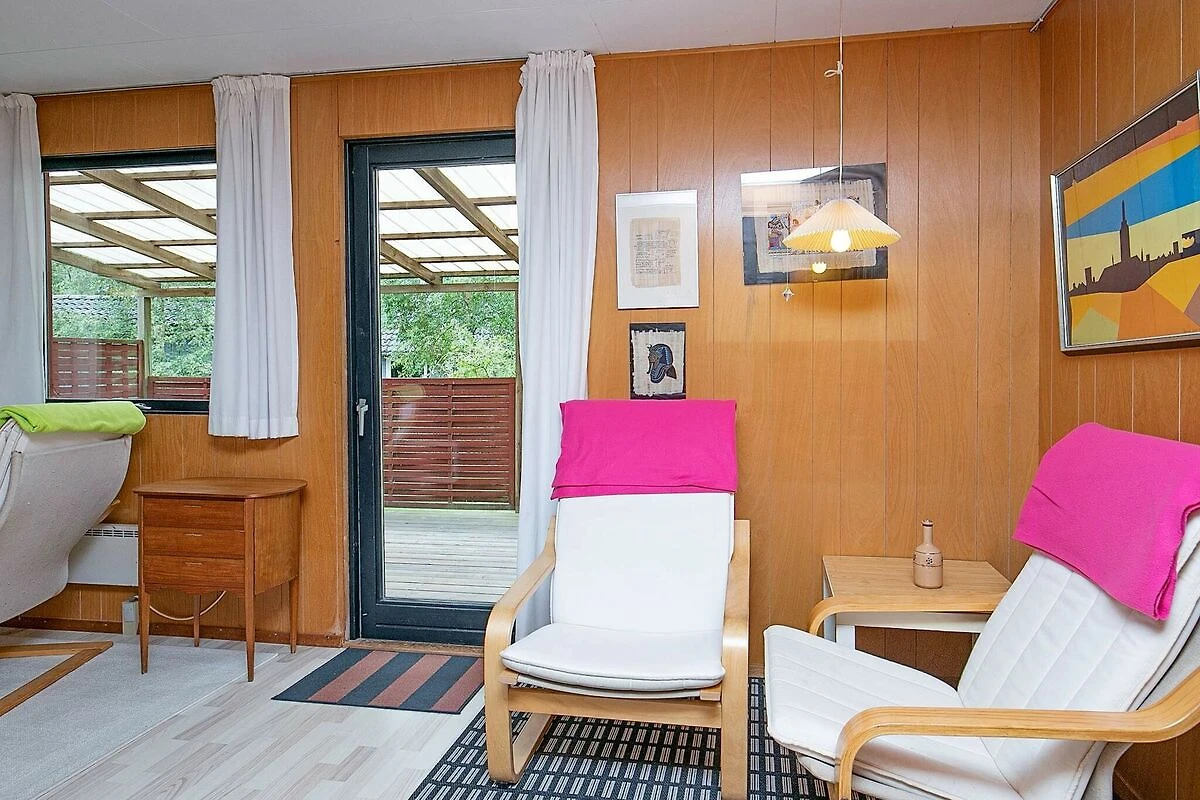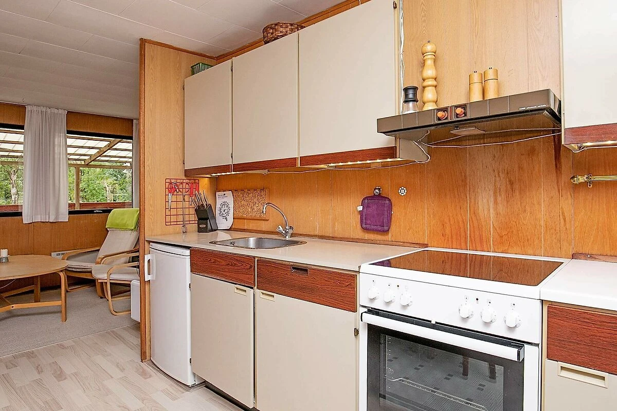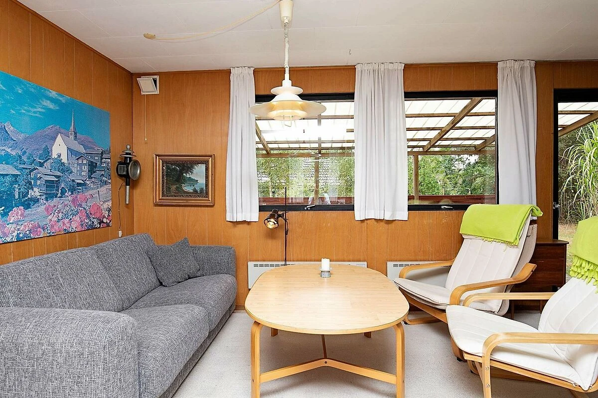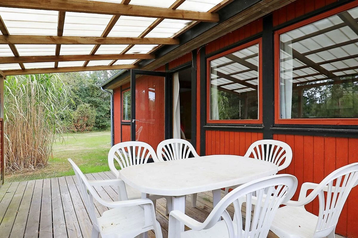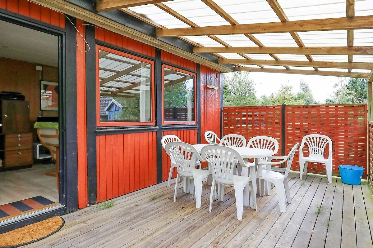 Casa vacanze situata su un grande terreno naturale con molto spazio per giochi con la palla e giochi. Cottage più vecchio con un classico odore di cottage. C'è anche ampia possibilità di prendere il sole. Terrazza coperta dove potersi divertire. C'è anche un posto auto coperto per i motivi.