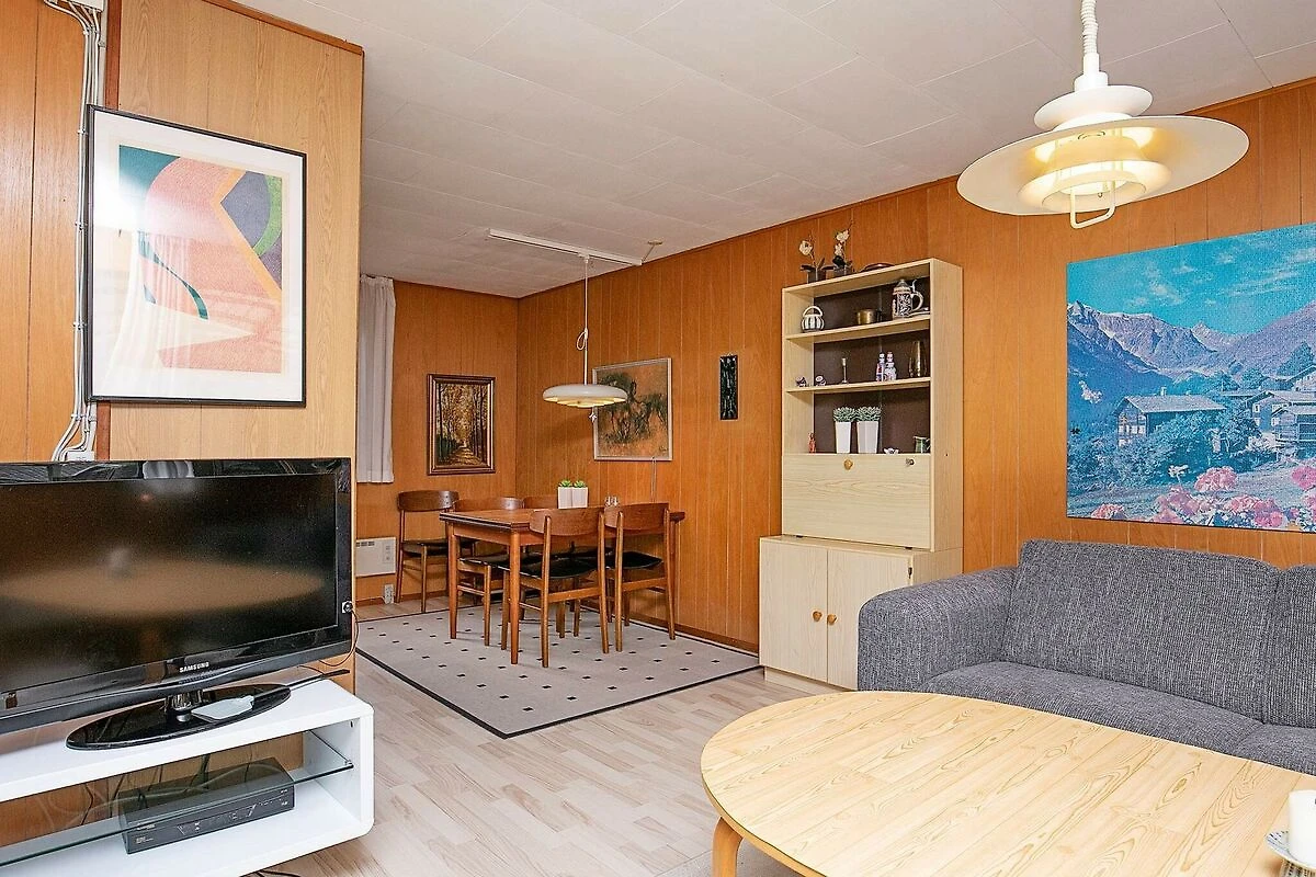 , Cucina separata(mobile cucina(elettrico), cappa aspirante, caffettiera, frigo con congelatore, lavatrice), Soggiorno/camera da letto(riscaldamento elettrico)(TV(satellite, canali televisivi tedeschi, canali TV danesi), impianto stereo), Camera da letto(riscaldamento elettrico)(letto matrimoniale), Camera da letto(riscaldamento elettrico)(4x letto a castello), Bagno(vasca o doccia, lavabo, WC), posto auto coperto, riscaldamento(elettrico), terrazza(coperto), mobili da giardino, lettini prendisole