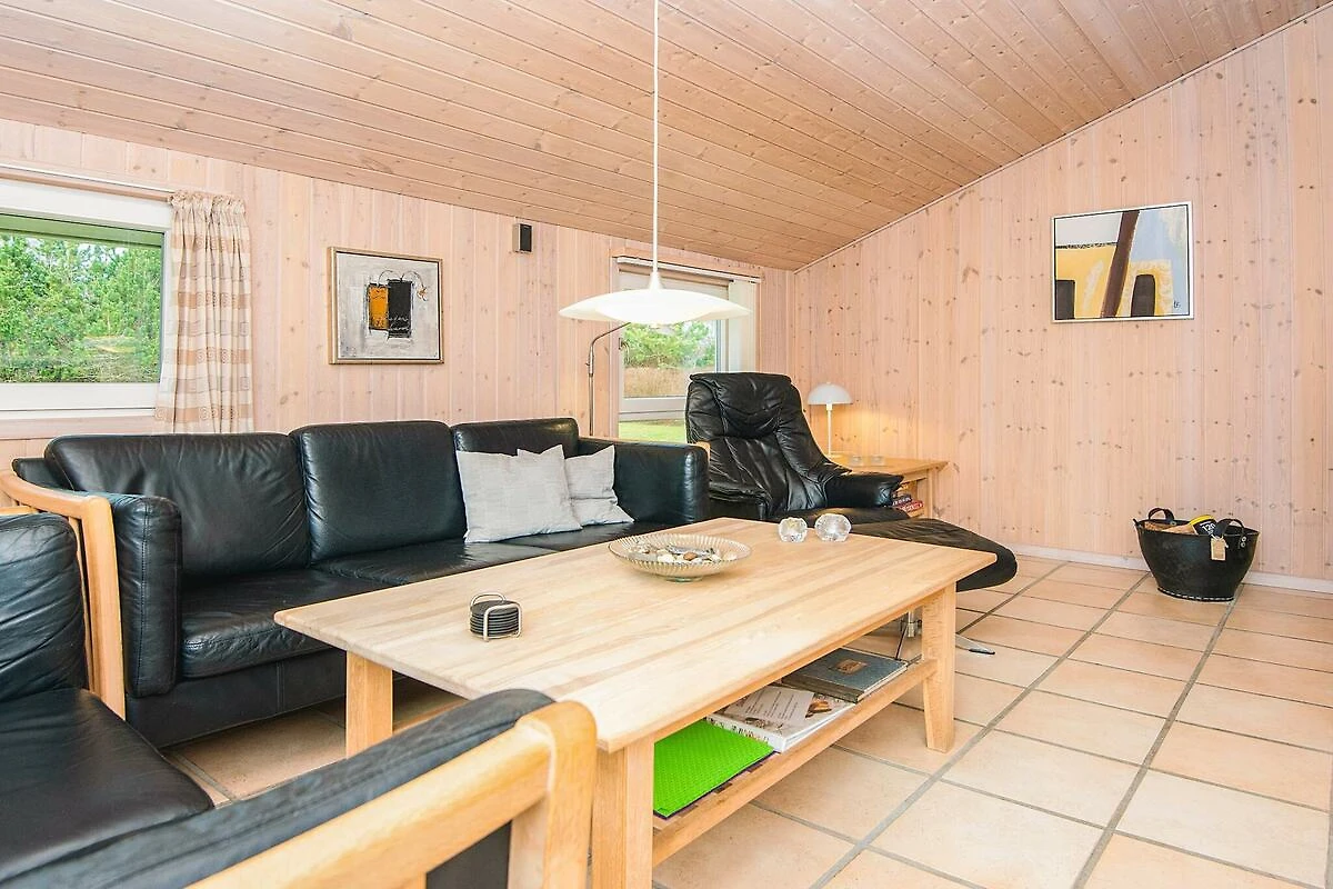 Questo cottage arredato in stile moderno si trova su un grande terreno appartato nel Jegum Ferieland, ideale per le famiglie, a ca. 10 minuti di auto dal Mare del Nord. Uno dei due bagni della casa contiene sia una vasca idromassaggio che una sauna. La cucina è dotata di tutti i moderni ausili ed è in collegamento aperto con il soggiorno con una buona luce. Il soggiorno è dotato di TV a schermo piatto, stufa a legna e condizionatore a basso consumo energetico, che garantisce una temperatura confortevole in tutte le stagioni. C'è Internet Stofa con pacchetto cottage per la TV. Ci sono diverse terrazze intorno alla casa. Dal soggiorno, arredato in stile moderno, si accede direttamente ad una terrazza coperta, dove è possibile seguire il gioco dei bambini nell'ampio terreno naturale e nella sabbiera. Posto auto coperto vicino alla casa.