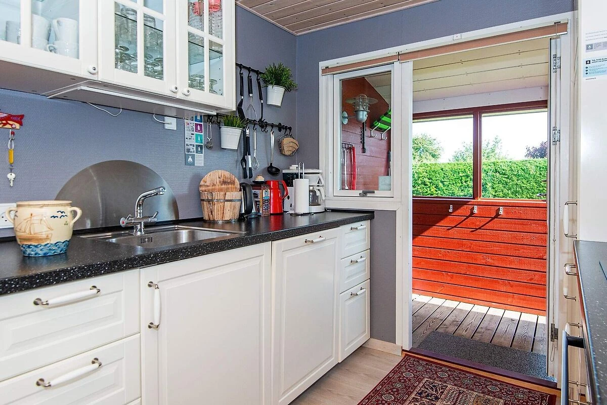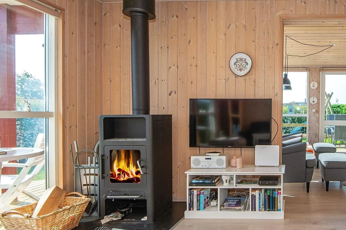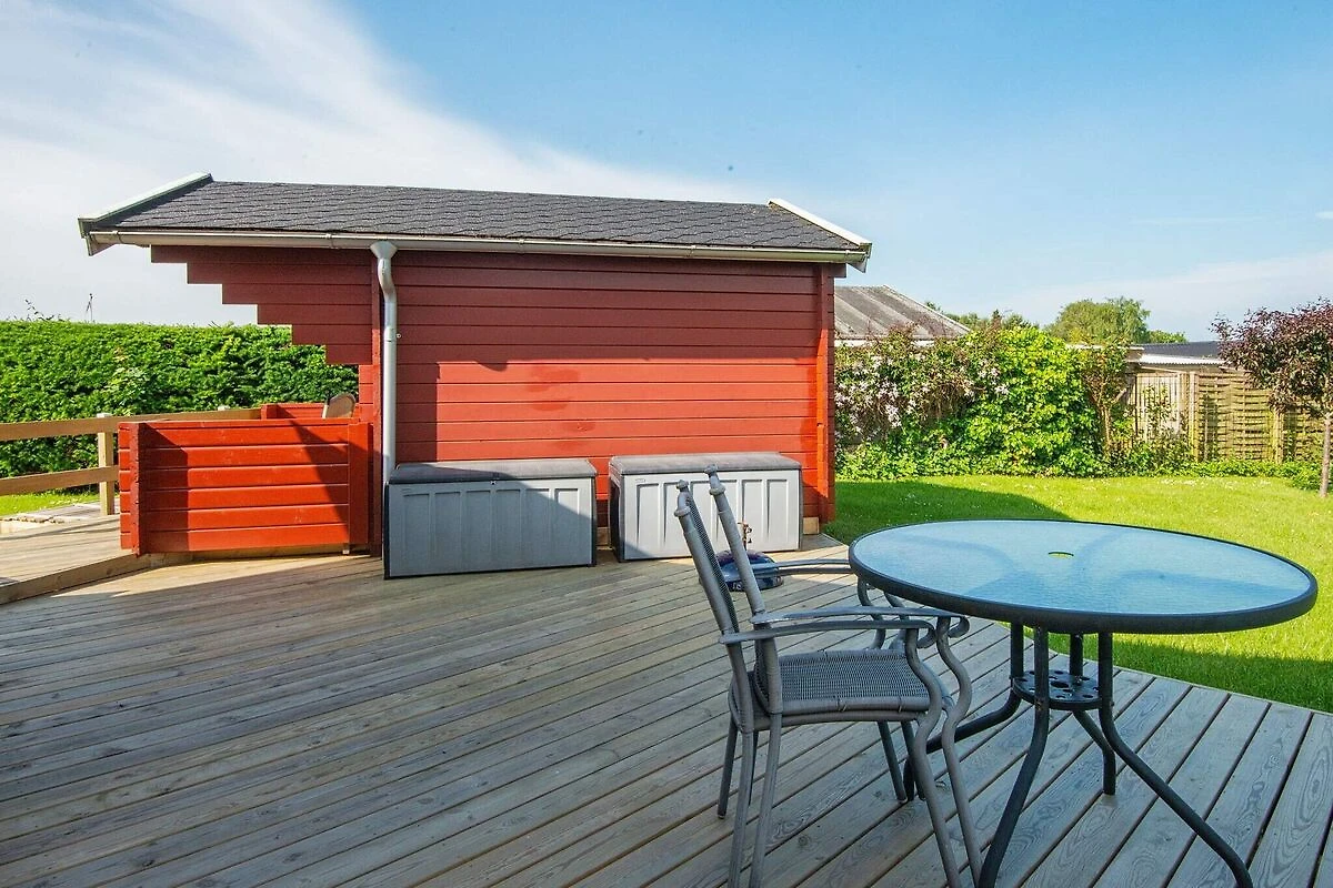 Angolo cottura(mobile cucina(elettrico), cappa aspirante, caffettiera, forno a microonde, lavastoviglie, frigorifero, congelatore(60-99L)), Soggiorno/camera da letto(TV(cavo, canali televisivi tedeschi, canali TV danesi), lettore DVD, lettore CD, impianto stereo, letto per bambini, seggiolone), Camera da letto(letto matrimoniale, letto per bambini), Camera da letto(letto matrimoniale), Bagno(sotto pavimento)(vasca o doccia, lavabo, WC, lavatrice), riscaldamento(elettrico), terrazza, terrazza(coperto), giardino, barbecue, giochi per bambini, tavolo per pulire il pesce, termopompa aria-aria