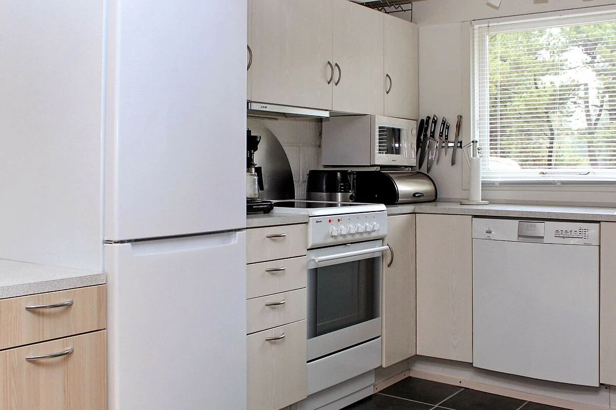 Angolo cottura(mobile cucina(elettrico), cappa aspirante, caffettiera, forno a microonde, lavastoviglie, congelatore(60-99L), frigo con congelatore, asciugabiancheria, lavatrice), Soggiorno/camera da letto(TV(satellite, canali televisivi tedeschi, canali TV danesi), video, radio, impianto stereo, seggiolone), Camera da letto(letto matrimoniale, letto per bambini), Camera da letto(letto matrimoniale), Camera da letto(2x letto singolo), Bagno(sotto pavimento)(vasca o doccia, lavabo, WC), posto auto coperto, riscaldamento(elettrico), terrazza, terrazza(coperto), barbecue, giochi per bambini, termopompa aria-aria