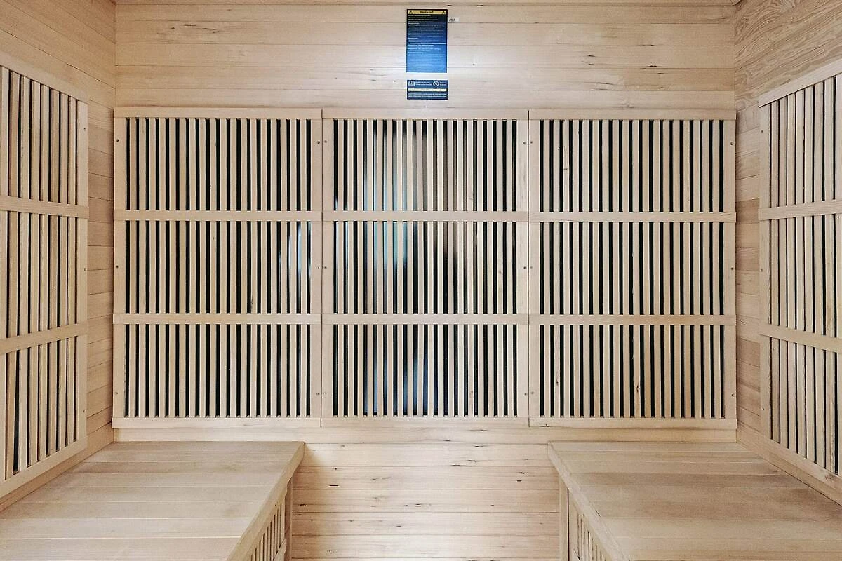 , Angolo cottura(mobile cucina(elettrico), cappa aspirante, caffettiera, forno a microonde, lavastoviglie, frigo con congelatore, lavatrice), Soggiorno/camera da letto(TV(satellite), lettore CD, impianto stereo), Camera da letto(letto matrimoniale), Camera da letto(letto matrimoniale), Camera da letto(letto matrimoniale), Bagno(sotto pavimento)(vasca o doccia, lavabo, WC), Bagno(sotto pavimento)(vasca o doccia, lavabo, WC), posto auto coperto, vasca idromassaggio(all’interno, riscaldata, 2 persone), sauna(all’interno, riscaldata, 2 persone), riscaldamento(elettrico), terrazza, barbecue, termopompa aria-aria