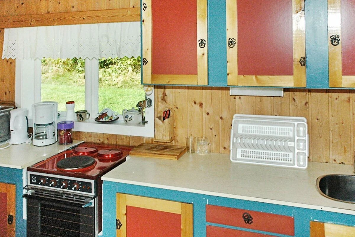 Cucina separata(mobile cucina(elettrico), caffettiera(per caffé americano), forno a microonde, frigorifero, congelatore(100-139L), lavatrice), Soggiorno/camera da letto(32 m2)(brandina doppia, TV(satellite, canali televisivi tedeschi, canali TV norvegesi), caminetto, lettore CD, impianto stereo), Camera da letto(11 m2)(letto pieghevole (1 pers.), letto matrimoniale), Bagno(lavabo, doccia, WC), riscaldamento(elettrico), terrazza(28 m2), mobili da giardino, barbecue, tavolo per pulire il pesce, termopompa aria-aria
