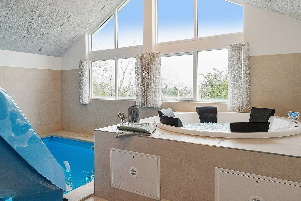Accogliente cottage per attività Skanlux situato a poco più di 900 m dalla spiaggia sabbiosa dell'Ostsee Resort Olpenitz. La casa è arredata con mobili e servizi moderni che la rendono perfetta per la vacanza in famiglia. La casa ha una sezione piscina, che contiene sia una grande piscina, uno scivolo d'acqua, un grande idromassaggio integrato e una sauna con spazio per 4-6 persone. La piscina è 18m & # 178; e con acquascivolo per i bambini. La piscina dispone anche di un impianto controcorrente, così per tutta la settimana potrete migliorare la vostra condizione con il nuoto quotidiano abbinato al puro relax nell'idromassaggio e nella sauna, che si trova anche nella sala biliardo. Internet gratuito con una velocità di 50 Mbit ti consente di trasmettere in streaming le tue serie preferite. \ La casa è estremamente spaziosa e ben dimensionata e costruita intorno a due zone notte separate. Ogni sezione ha un bagno, così come c'è un bagno aggiuntivo in connessione con la sezione della piscina. Tutta la casa dispone di riscaldamento a pavimento. La sala da pranzo/soggiorno è arredata con gusto con impianto stereo con lettore CD, TV a schermo piatto, lettore DVD, seggiolone, zona divano e stufa a legna. La casa dispone di 7 camere da letto. I letti singoli possono essere uniti in un letto matrimoniale. Inoltre, spazioso soppalco. La cucina è dotata di i.a. 2 fornelli, 2 forni, 2 macchine da caffè e 2 lavastoviglie. Nella sala attività, adulti e bambini possono divertirsi con biliardo, ping pong, freccette, PS4 e calcio balilla. L'accogliente bar con frigo invita a un piccolo strappo nella pausa tra le attività o quando i bambini vengono messi a letto. Le terrazze, di cui 16 m & # 178; è coperto, attrezzato con mobili da giardino e barbecue. Siete pregati di notare che il funzionamento della piscina e l'uso del sistema controcorrente, della sauna e del centro benessere comportano un aumento del consumo di elettricità e acqua. A seconda della stagione e dell'utilizzo, un consumo di ca. 20 & # 8211; 30 euro al giorno. *** & # 160; Tieni presente che nella zona vengono continuamente costruite nuove case, che possono causare rumore. *** *** Informazioni importanti: Il deposito deve essere pagato al nostro partner di servizio sul conto IBAN: DE