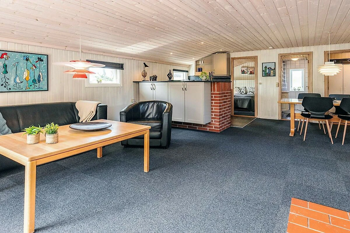Casetta ben tenuta con un buon terrazzo dove trovare riparo e godersi il sole. La casa si trova su un buon terreno naturale con alberi ea poca distanza a piedi sia dalla città che dalla spiaggia di Vorupør. La casa è ben arredata con due buone camere da letto con letti matrimoniali e un soggiorno con i.a. stufa a legna. La casa ha una bella terrazza in pelle, dove è possibile sedersi al riparo e grigliare nelle calde serate estive. C'è internet gratuito e fulmineo tramite rete in fibra. Accesso gratuito alla piscina Sydthy con parco acquatico.