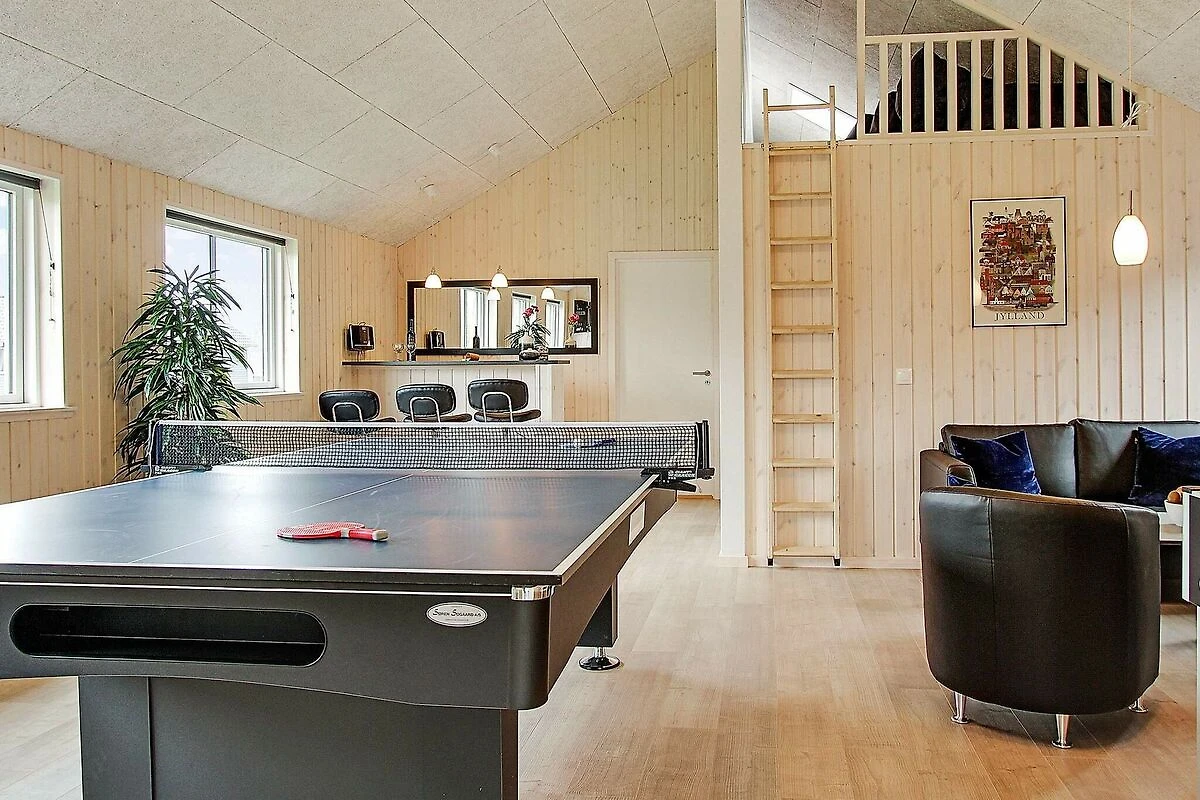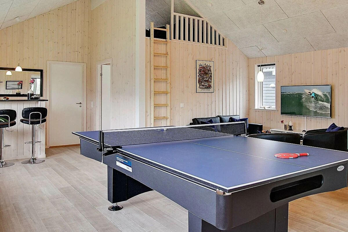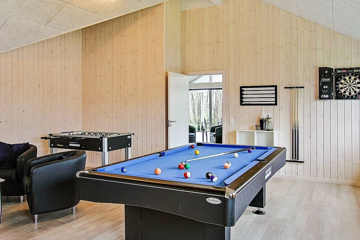 Le possibilità di gioco e l'area piscina/sauna, cucina spaziosa e angoli salotto accoglienti.