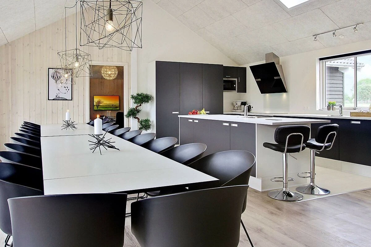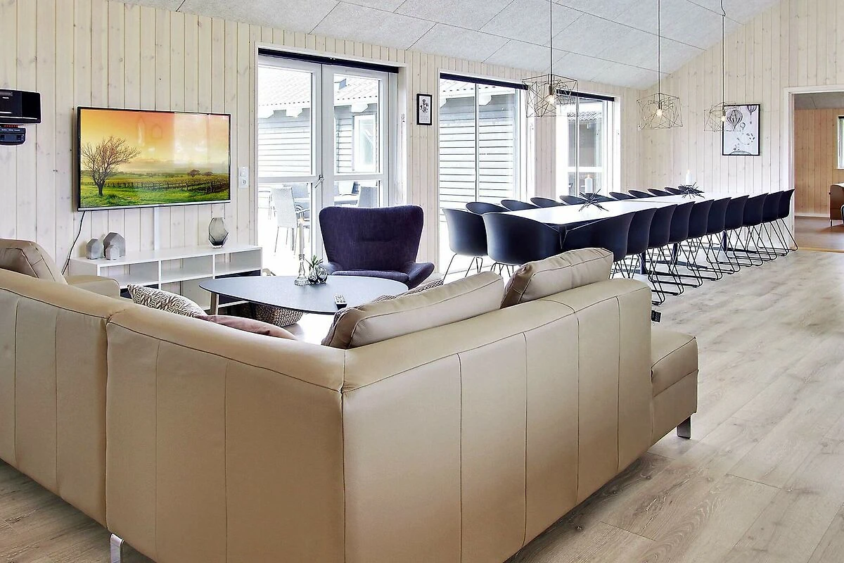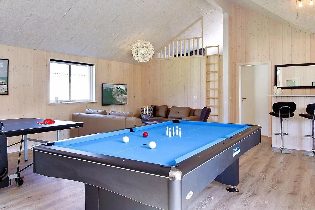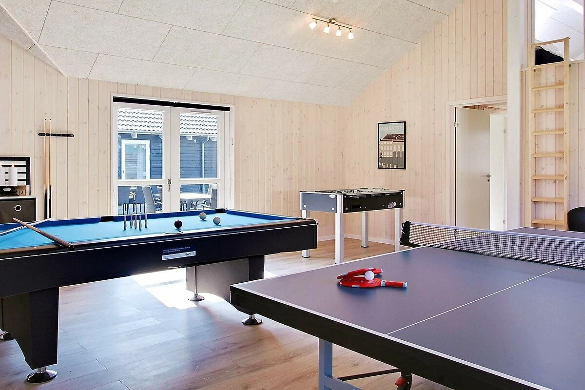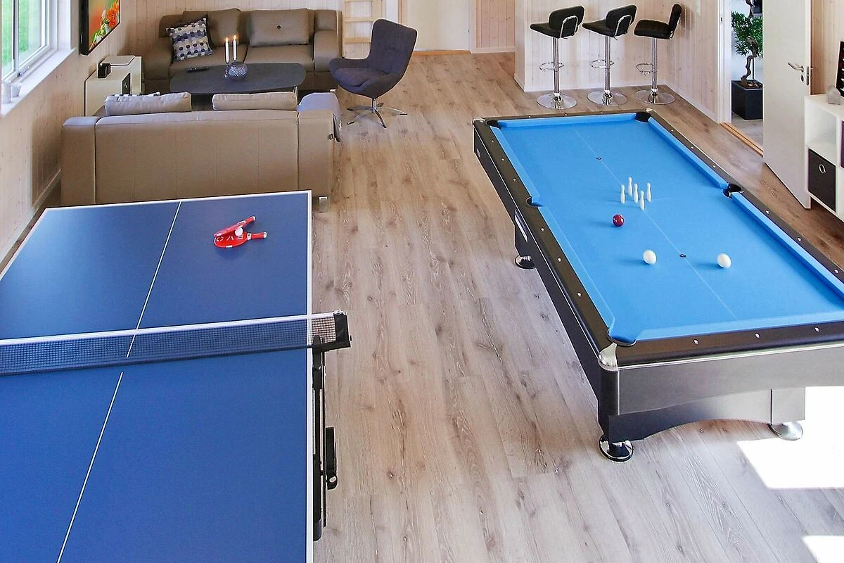 Questa casa di attività Skanlux ben arredata contiene semplicemente tutto ciò che il cuore può desiderare in termini di attività e opportunità di sviluppo. La casa è adatta anche per compleanni di famiglia, cresime, matrimoni ed eventi aziendali. E se siete moltissimi, avete la possibilità di affittare anche una delle case vicine, anch'esse ben attrezzate e arredate con tante camere da letto. L'ampia zona piscina contiene una grande piscina con impianto controcorrente, faro subacqueo e scivolo, una sauna, un bagno e una grande vasca idromassaggio con spazio per 4-6 persone. Nella sala attività, alcuni possono divertirsi al bar, mentre altri giocano a biliardo al tavolo da biliardo. Qui puoi anche guardare film in DVD o sfidarti a ping pong, freccette e calcio balilla o gareggiare in vari giochi elettronici su PlayStation4. La casa è estremamente spaziosa e ben dimensionata e costruita intorno a 3 zone notte separate. Ogni zona notte è dotata di bagno, inoltre c'è un ulteriore bagno nella zona piscina. La zona pranzo/soggiorno è arredata con gusto con stereo con lettore CD, TV a schermo piatto, zona divani e stufa a legna. La cucina è attrezzata con 2 piastre in vetroceramica, 2 forni separati, 2 frigoriferi, 2 macchine da caffè e 2 lavastoviglie. La casa dispone di 9 camere da letto e 2 soppalchi ampi e spaziosi. Ci sono materassi a molle in tutte le camere e sui soppalchi. I letti singoli nelle camere possono essere uniti in un letto matrimoniale. Ampia terrazza solarium all'aperto e terrazza coperta con barbecue - perfetta per un'accogliente serata barbecue con la famiglia e gli amici. Siete pregati di notare che il funzionamento della piscina e l'uso del sistema controcorrente, della sauna e del centro benessere comportano un aumento del consumo di elettricità e acqua. A seconda della stagione e dell'utilizzo, un consumo di ca. 20 & # 8211; 30 euro al giorno. Alcune case sono ancora in costruzione nella zona e vicino alla casa. Pertanto, a volte possono esserci problemi di costruzione come. rumore e polvere. *** Informazioni importanti: Il deposito deve essere versato al nostro partner di servizio sul conto IBAN: DE58 2175 0000 0165 3631 28, BIC
