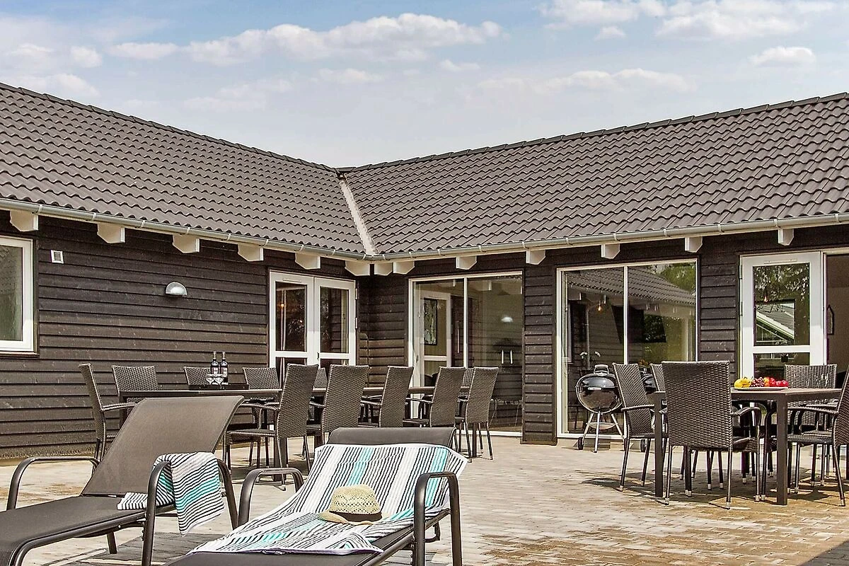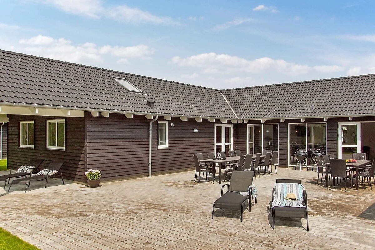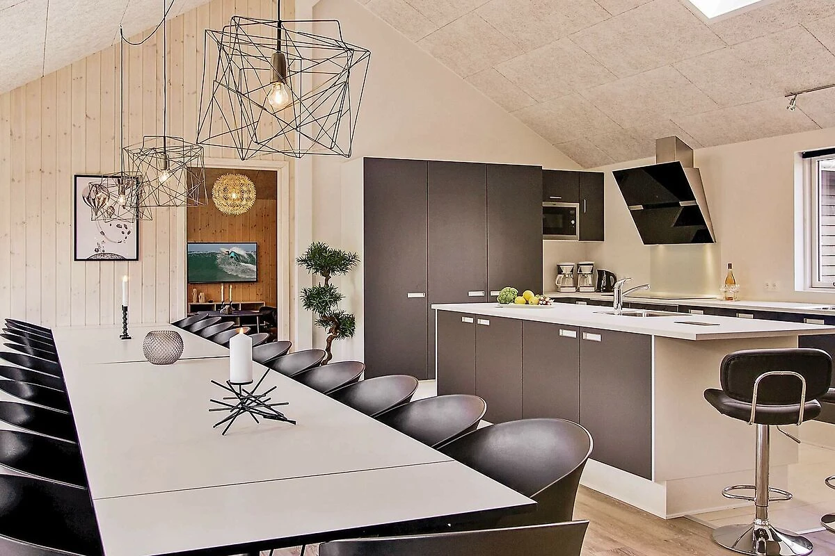 Questa casa di attività Skanlux ben arredata contiene semplicemente tutto ciò che il cuore può desiderare in termini di attività e opportunità di sviluppo. La casa è adatta anche per compleanni di famiglia, cresime, matrimoni ed eventi aziendali. E se siete moltissimi, avete la possibilità di affittare anche una delle case vicine, anch'esse ben attrezzate e arredate con tante camere da letto. L'ampia zona piscina contiene una grande piscina con impianto controcorrente, faro subacqueo e scivolo, una sauna, un bagno e una grande vasca idromassaggio con spazio per 4-6 persone. Nella sala attività, alcuni possono divertirsi al bar, mentre altri giocano a biliardo al tavolo da biliardo. Qui puoi anche guardare film su DVD o sfidarti a ping pong, freccette e calcio balilla o gareggiare in vari giochi elettronici su Playstation-4. La casa è estremamente spaziosa e ben dimensionata e costruita intorno a 3 zone notte separate. Ogni zona notte è dotata di bagno, inoltre c'è un ulteriore bagno nella zona piscina. I letti singoli possono essere uniti in un letto matrimoniale. La zona pranzo/soggiorno è arredata con gusto con stereo con lettore CD, TV a schermo piatto, zona divani e stufa a legna. La cucina è attrezzata con 2 piastre in vetroceramica, 2 forni separati, 2 frigoriferi, 2 macchine da caffè e 2 lavastoviglie. La casa dispone di 9 camere da letto e 2 soppalchi ampi e spaziosi. Ci sono materassi a molle in tutte le camere e sui soppalchi. Ampia terrazza solarium all'aperto e terrazza coperta con barbecue - perfetta per un'accogliente serata barbecue con la famiglia e gli amici. Il saldo dei consumi, delle pulizie e della cauzione si paga in contanti in loco. Siete pregati di notare che il funzionamento della piscina e l'uso del sistema controcorrente, della sauna e del centro benessere comportano un aumento del consumo di elettricità e acqua. A seconda della stagione e dell'utilizzo, un consumo di ca. 20 & # 8211; 30 euro al giorno. *** & # 160; Tieni presente che nella zona vengono continuamente costruite nuove case, che possono causare rumore. *** *** Informazioni importanti: Il deposito deve essere pagato al nostro partner di servizio sul conto IBAN: DE58