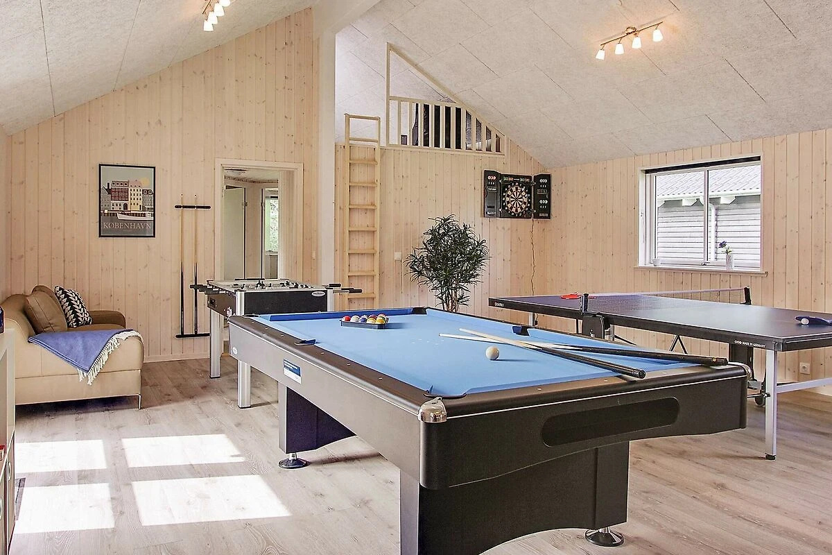 La generosa suddivisione e le molte possibilità nella sala ricreativa (ping pong, calcetto, biliardo)