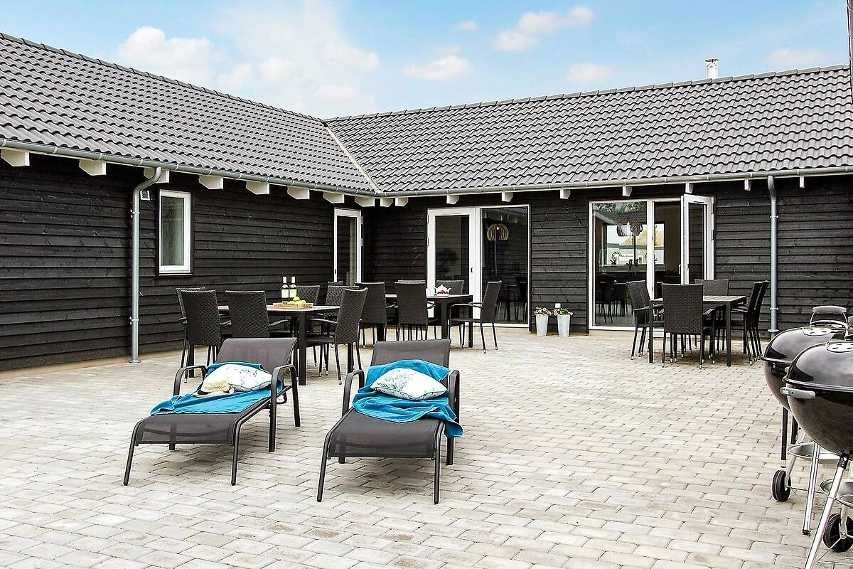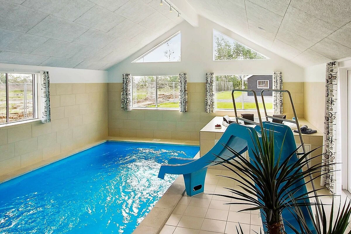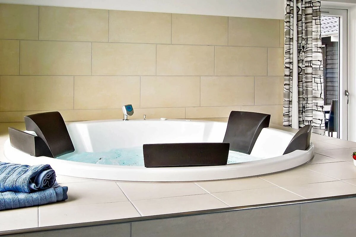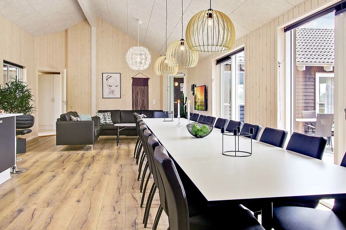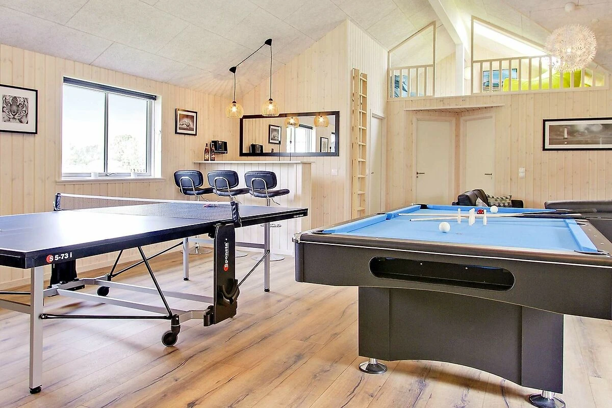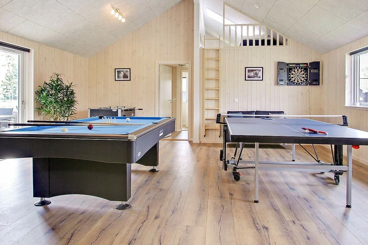 Cottage Skanlux ben arredato situato a poco più di 900 m dalla spiaggia sabbiosa di Olpenitz. L'area della piscina è un eldorado per i cani d'acqua. I 20 metri & # 178; la grande piscina è dotata di impianto controcorrente, faro subacqueo e acquascivolo. Oltre alla piscina, questa sezione dispone di una grande vasca idromassaggio per 4-6 persone, bagno e sauna. La sala attività della casa è il grande luogo di ritrovo quando vuoi divertirti al bar o gareggiare in vari giochi. Qui puoi giocare a biliardo, ping pong, calcio balilla, PlayStation4. Puoi anche guardare un DVD sul grande televisore a schermo piatto. Al centro della casa si trova il grande e invitante soggiorno/sala da pranzo. Ecco un accogliente gruppo di divani, una stufa a legna, che fornisce calore e intimità, nonché una grande TV a schermo piatto. Qui è anche ovvio rilassarsi con un gioco da tavolo o un buon libro. Il grande tavolo lungo è il luogo di ritrovo naturale, ad esempio durante i pasti. In cucina ci sono i.a. 2 frigoriferi, 2 lavastoviglie, 2 fornelli, 2 forni, 2 macchine da caffè e tanto spazio intorno alla grande isola lavanderia, dove è anche possibile sedersi su sgabelli da bar e seguire e magari gustare un bicchierino mentre si cucina in cucina. Dalla sala attività si può salire al grande soppalco, dove ci sono 4 materassi a molle e una TV. Le 8 camere da letto della casa sono divise in 3 sezioni. I due vani letto sono ubicati rispettivamente a 2 e 3 vani, a ciascuna estremità della sala attività, mentre l'ultimo vano notte a 3 vani si trova nell'ala opposta con ingresso sulla cucina. In questo modo, ad esempio, puoi distribuirti in modo che chi va a letto prima sia più lontano dalla stanza delle attività. I letti singoli possono essere uniti in un letto matrimoniale. La casa è arredata con arredi e servizi moderni, che la rendono perfetta per la vacanza in famiglia da più generazioni o per il soggiorno informale di riunioni e conferenze per il dipartimento o la piccola azienda. All'esterno troverete una sabbiera, un'altalena e uno scivolo (usato a proprio rischio/assicurazione). Ampia terrazza solarium all'aperto e terrazza coperta con barbecue - perfetta per un'accogliente serata barbecue. essere