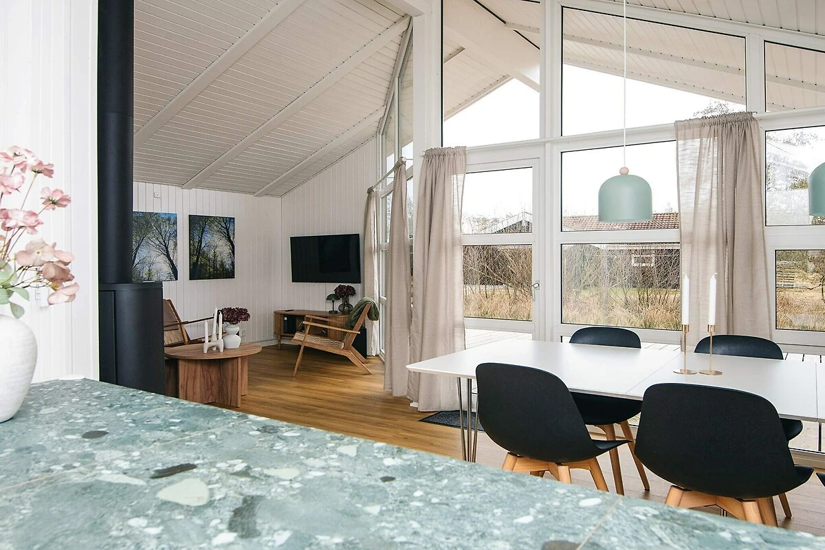 Cottage ben arredato e isolato per tutto l'anno continuamente rinnovato con ogni struttura immaginabile. C'è una TV a schermo piatto in casa. Cucina / soggiorno ampia e accogliente con sezioni in vetro fino al pendio e accesso diretto alla terrazza in legno esposta a sud-ovest. Ci sono splendide viste panoramiche sulla ricca fauna selvatica a portata di mano. La casa è a due passi dall'acqua, dalla spiaggia e dalle dune. L'energia elettrica alla casa è fornita da turbine eoliche.