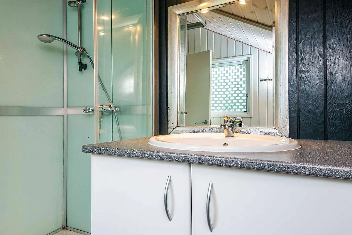Angolo cottura(mobile cucina(elettrico), cappa aspirante, caffettiera, forno a microonde, lavastoviglie, frigorifero), Soggiorno/camera da letto(TV(cavo, canali televisivi tedeschi, canali TV danesi)), Camera da letto(letto matrimoniale), Camera da letto(2x letto singolo), Bagno(sotto pavimento)(vasca o doccia, lavabo, WC), riscaldamento(elettrico), terrazza, barbecue