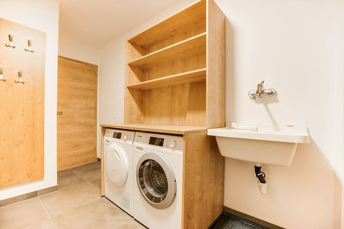 Lo chalet è attrezzato secondo standard elevati e offre un ampio soggiorno, una moderna cucina aperta e completamente attrezzata con tavolo da pranzo, 5 ampie camere da letto distribuite su 3 piani e progettate nello stile dello chalet (una delle quali ha un letto a castello extra ) e 4 bagni. Dal soggiorno e dalla cucina si accede a due ampi terrazzi posti sul lato soleggiato (attrezzati con lettini). Su una delle terrazze c'è un tavolo da giardino e sedie a sdraio. Nel seminterrato si trova un'area benessere con sauna, vasca e doccia. C'è anche un ampio deposito sci con asciuga scarponi e un deposito separato per valigie e/o biciclette.