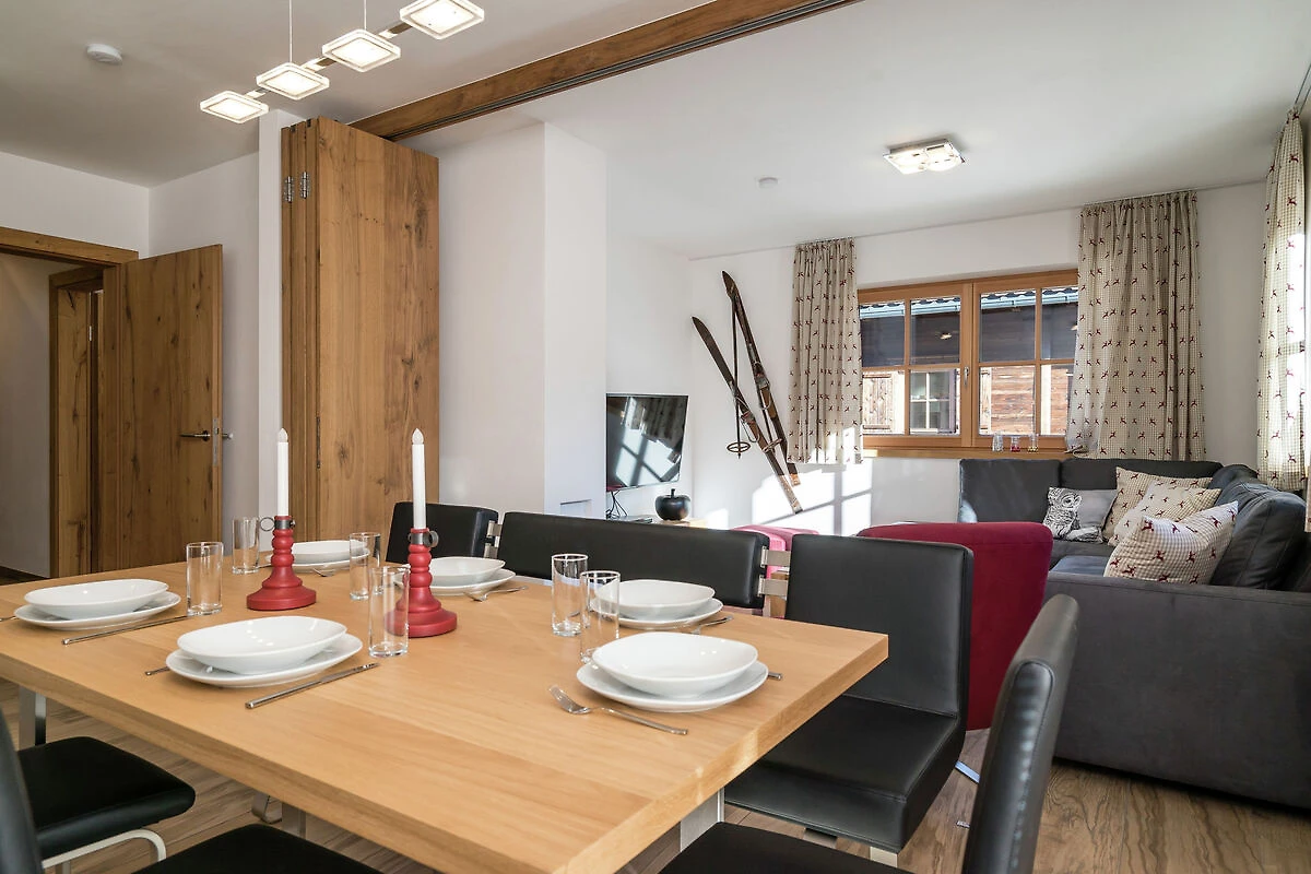Abbiamo soggiornato nell'appartamento 8 con 5 persone. Questo appartamento ha davvero tutto ciò di cui hai bisogno! A 1 minuto di auto dagli impianti di risalita, da cui hai accesso a 170 km di piste da sci. È nuovo e molto bello, ha una terrazza molto ampia esposta al sole. Lavastoviglie, lavatrice, 2 macchine per il caffè (per cialde e caffè macinato), frullatore, giochi da tavolo, 2 bagni, smart TV in ogni camera, c'è tutto. Ci sembra ideale anche durante l'estate. Suggerimento per il gestore: nuova batteria nell'orologio in cucina e controllare il debole getto d'acqua nella doccia all'ingresso.