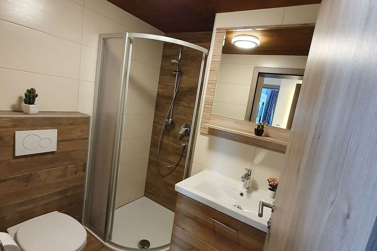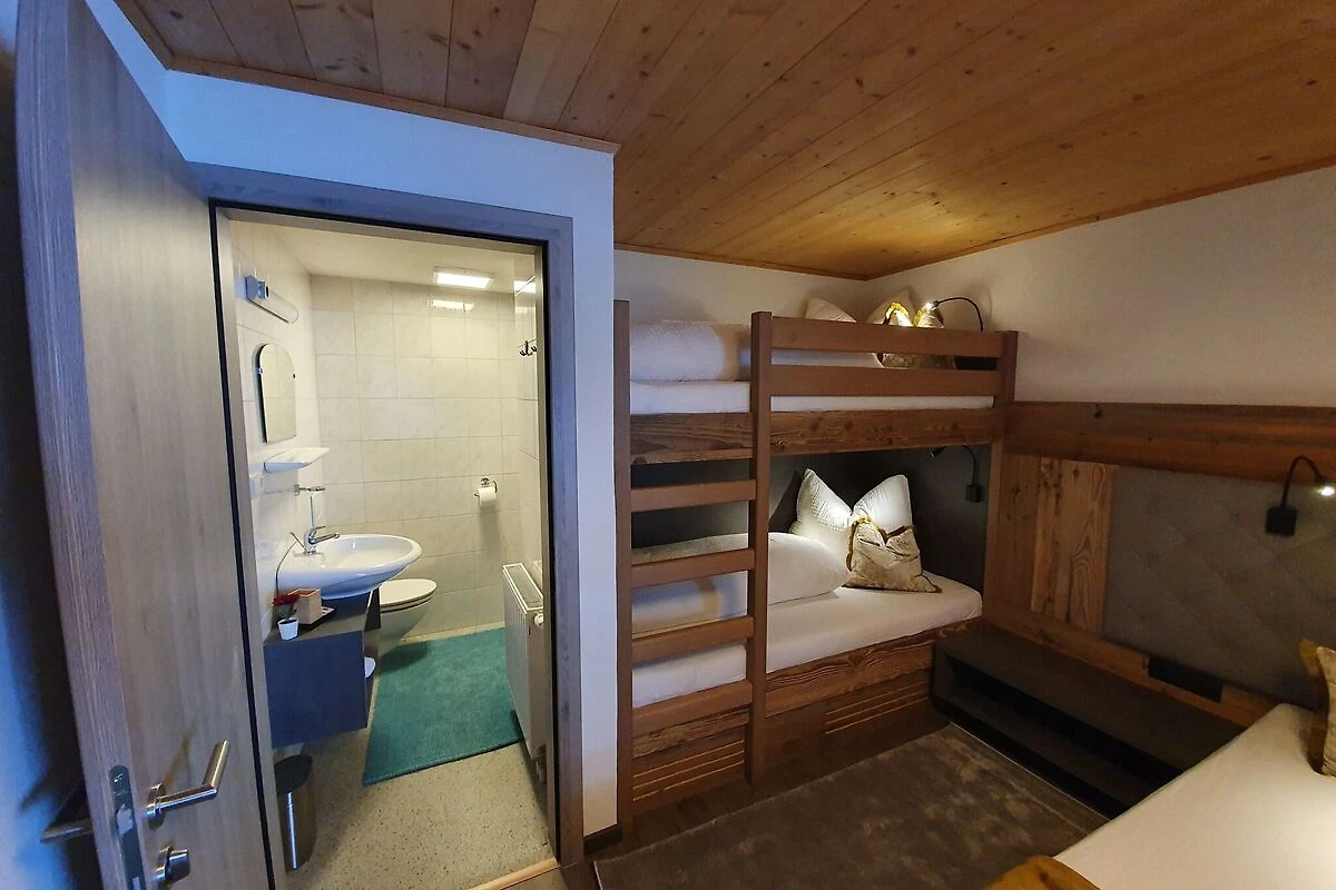 bellissimo appartamento con 4 camere, ben rifinito. eravamo in 6 adulti e 2 bambini. 1 bagno confina con la camera per 4 persone. 2 bagni separati, tutti con wc. Cucina abitabile completa con grande tavolo dove si può facilmente sedere in 10. Nessun divano. Ma c'è un delizioso balcone coperto dove si può stare comodamente all'ombra o dalla pioggia. Anche l'ingresso alla porta d'ingresso è ampiamente coperto, qui i bambini possono anche giocare comodamente al coperto. La comunicazione con la proprietaria è buona. La lavatrice è condivisa con 3 appartamenti. Supermercato/fermata dei mezzi/impianto di risalita è raggiungibile a piedi in 15-20 minuti.