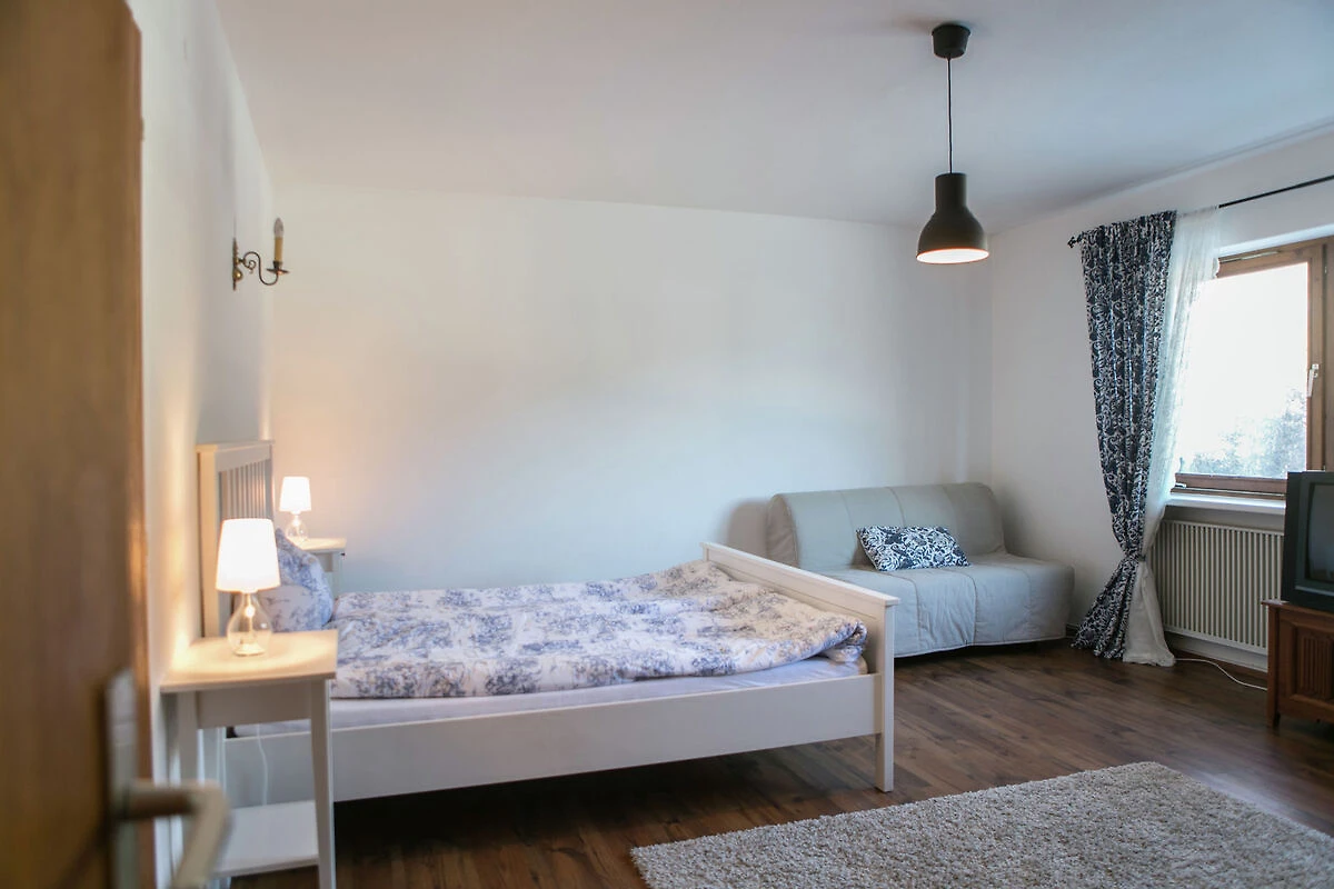 In una splendida posizione nella valle di Bressanone, a circa 3 km. Hopfgarten si trova fuori casa Dorota. Al piano terra tramite un ingresso privato si trova questo accogliente appartamento. La porta è un bel giardino con terrazza. C'è anche una sauna e tennis da tavolo. Non c'è quasi traffico perché la casa è su una strada senza uscita.