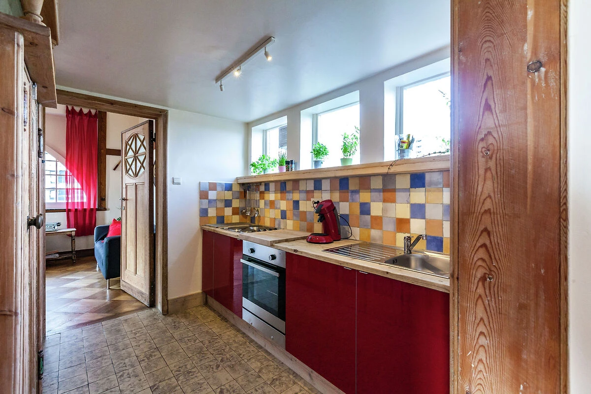 L'edificio è gelegen.Voor impressionante e fresco che il prezzo è la cucina molto semplice fuoco di cottura che funziona appena, un deplorevole piccolo forno portatile, attrezzature poco e solo un Senseo (nessun caffè ordinario ...). Arredobagno sono molto semplici per quel prezzo! Siamo spiacenti ...
