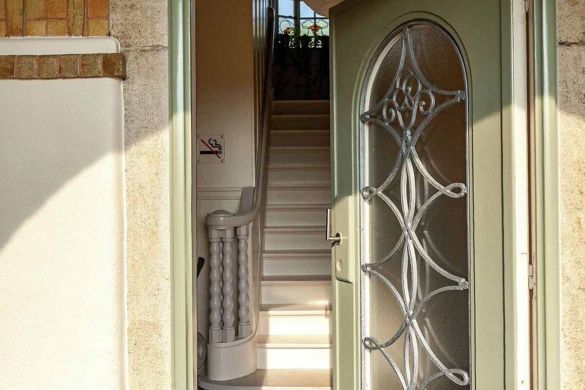 Bellissimo edificio con decorazioni speciali vicino al mare, un po' di distanza a piedi dai negozi.