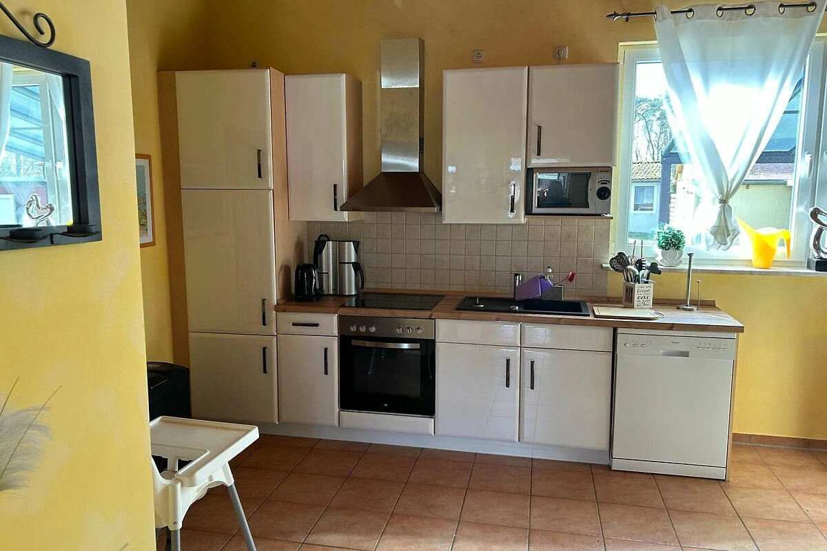 Il bungalow per le vacanze è bello, spazioso e accogliente. L'attrezzatura è molto buona. Soprattutto ci sono abbastanza armadi. La recinzione della proprietà è ideale soprattutto per una vacanza con un cane. Il Salzhaff è interessante ma non è molto adatto per nuotare. Tuttavia, le spiagge di Rerik e Kühlungsborn sono facilmente raggiungibili. Ci è piaciuta molto la vacanza.