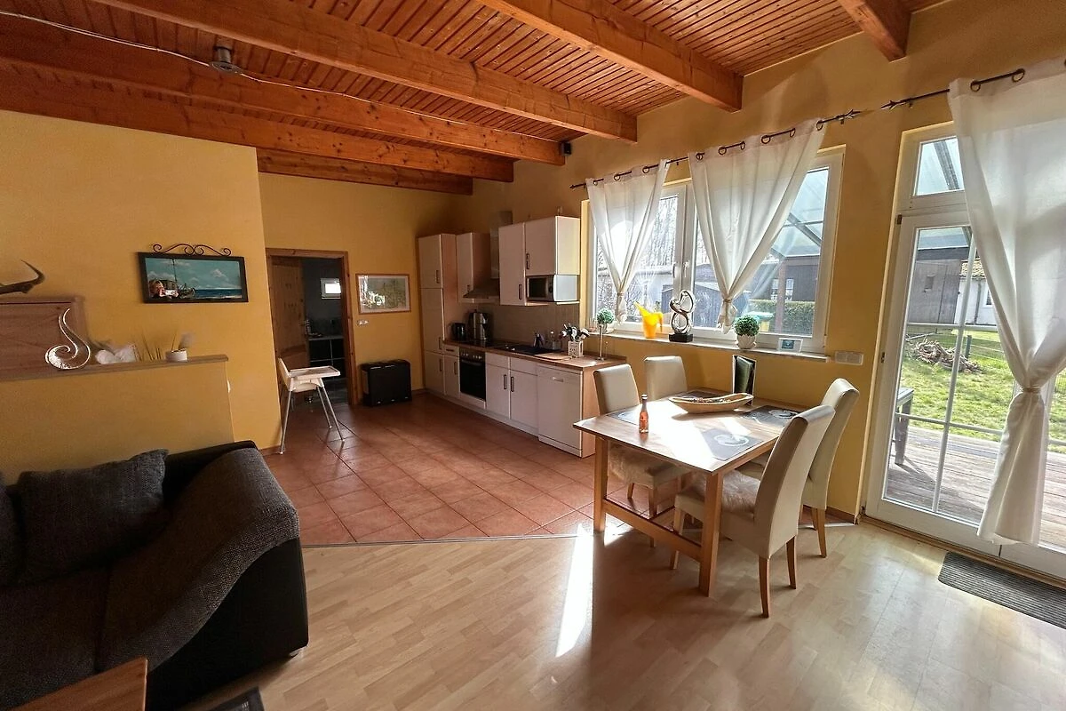 Il bungalow per le vacanze è spazioso e accogliente. L'arredamento è molto buono. Soprattutto ci sono armadi sufficienti. La recinzione della proprietà è ideale soprattutto per una vacanza con il cane. Il Salzhaff è interessante ma non molto adatto per fare il bagno. Per questo, le spiagge a Rerik e Kühlungsborn sono facilmente raggiungibili. Ci siamo trovati molto bene in vacanza.
