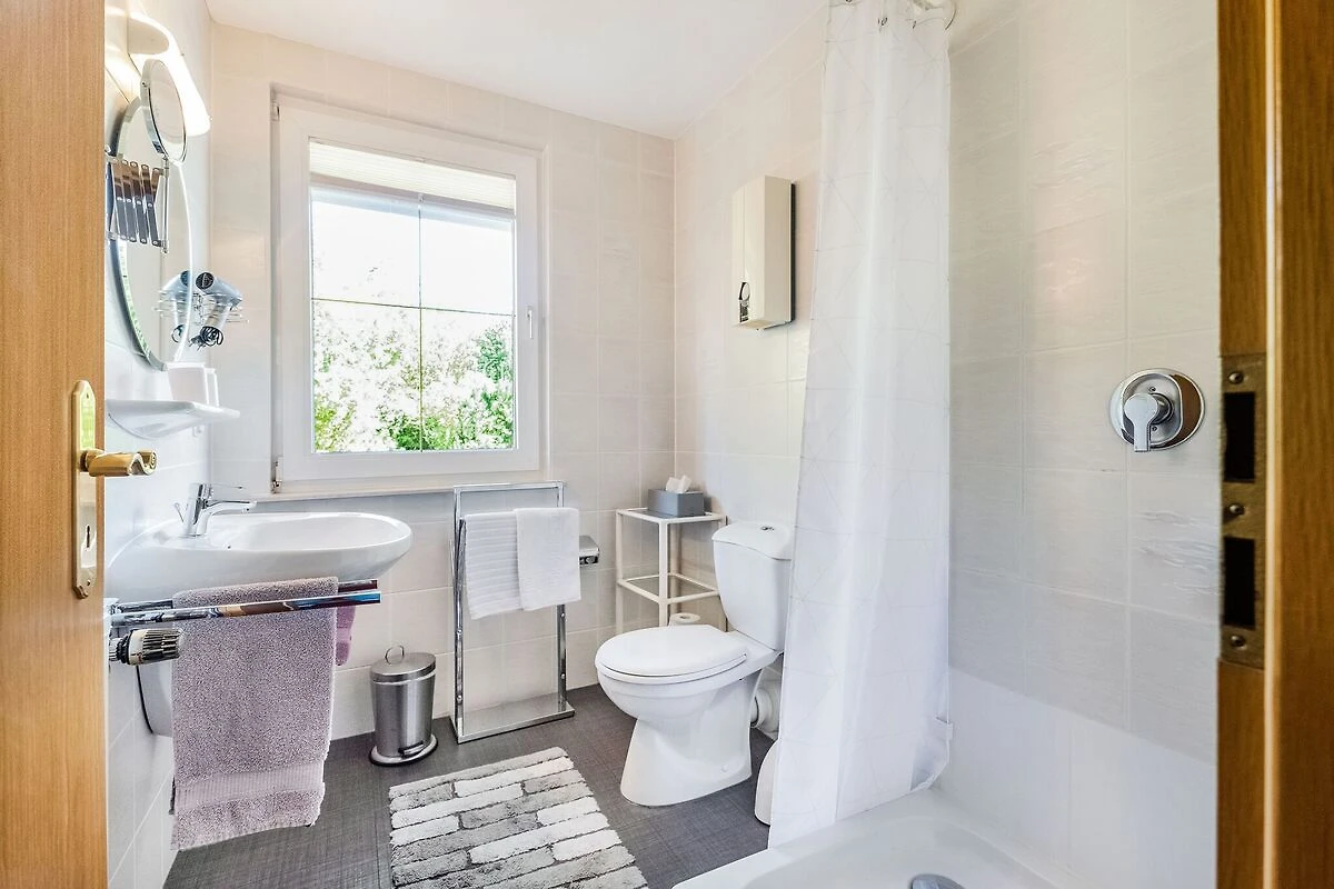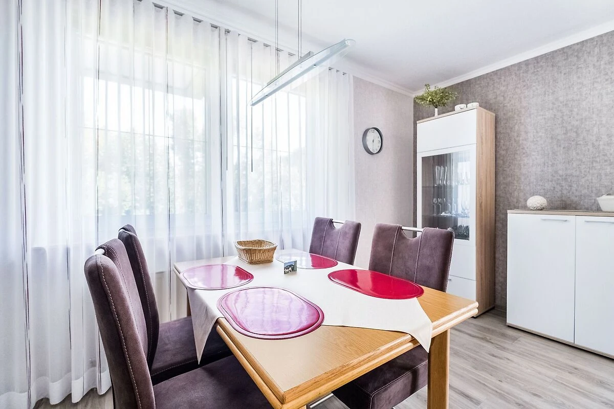 Il nostro appartamento per le vacanze, funzionale e di alta qualità, vi offre non solo una posizione tranquilla, ma anche comfort moderni. Il balcone separato offre una splendida vista sul verde e sulla città. Nel giardino direttamente adiacente alla casa, sedie a sdraio, un ombrellone e un grande prato invitano a rilassarsi, giocare o prendere il sole. È disponibile anche un tavolo da ping-pong.