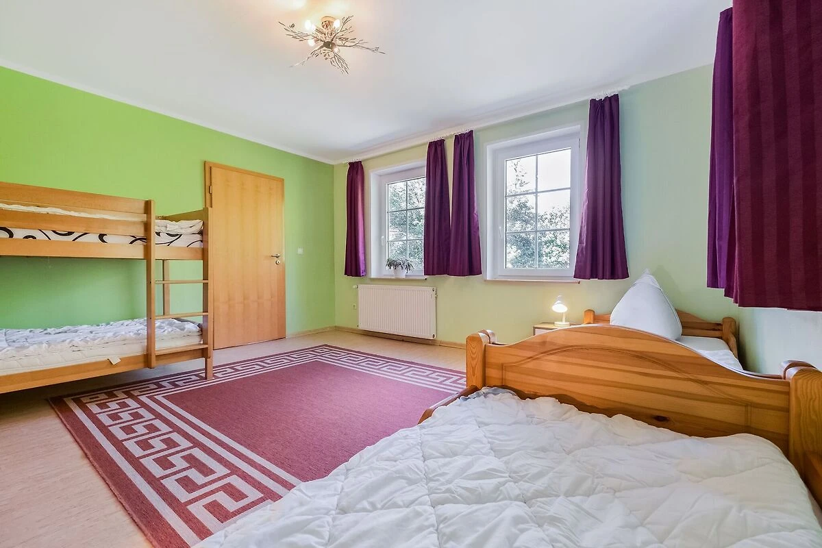 Al 1° piano: (Camera da letto(2x letto singolo, letto a castello), Camera da letto(letto matrimoniale), Camera da letto(letto matrimoniale), Bagno(vasca, doccia, WC))