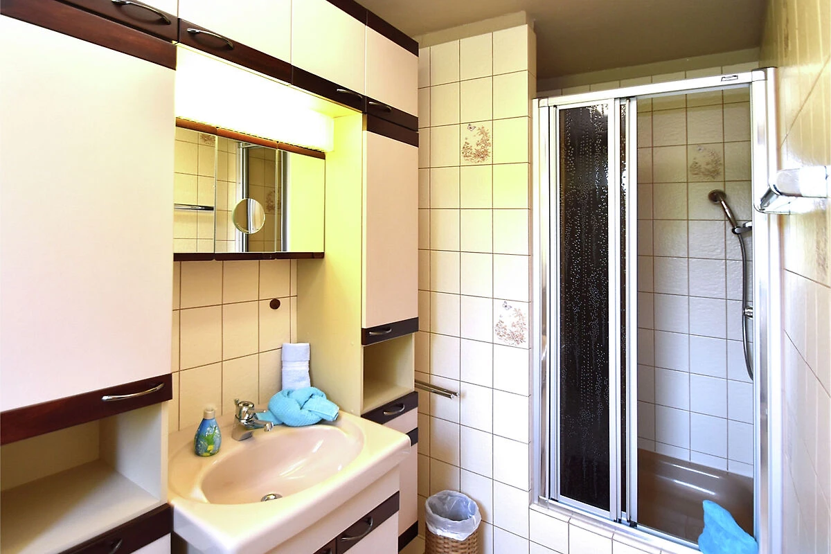 È tutto molto semplice e ben riuscito. La casa è molto spaziosa, ma si può anche ritirarsi bene. La casa è ben attrezzata e alcuni dei bagni sono stati ristrutturati. Si deve solo camminare un po' a lungo dall'area pranzo alla cucina, che è però dotata di 2 frigoriferi e 2 caffettiere, il che è molto vantaggioso con così tante persone. Un microonde sarebbe anche molto pratico, ma non è presente. La terrazza offre tutto per un bel soggiorno in estate: barbecue e posti a sedere, e il giardino è semplicemente da sogno.