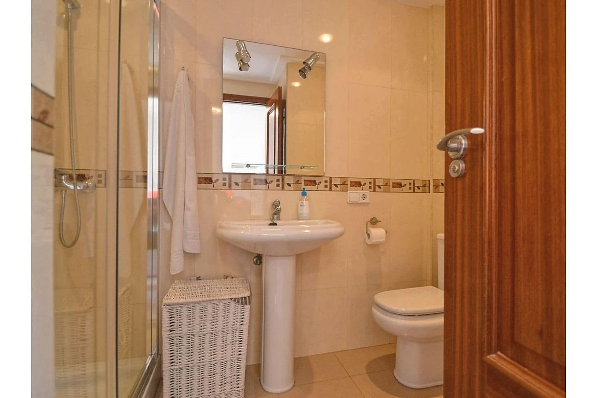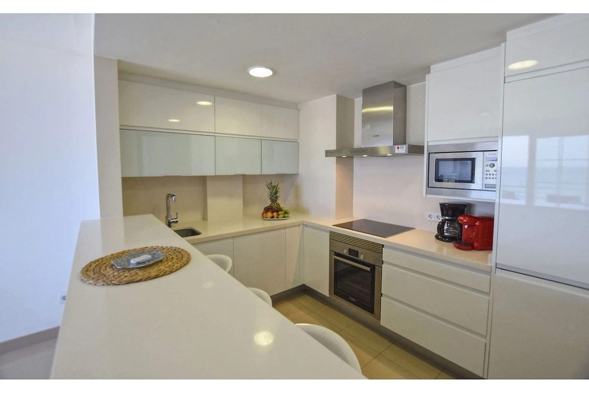 Con tre comode camere da letto e due bagni completi, questo duplex offre ampio spazio per sistemarsi. La camera da letto principale dispone di balcone e bagno privato, mentre le camere aggiuntive includono due letti singoli e un letto a castello, rendendolo ideale sia per coppie che per famiglie. L'elegante cucina è completamente attrezzata con elettrodomestici moderni, dandovi la possibilità di cucinare a casa prima di gustare i pasti all'interno o all'esterno. Un garage, una lavatrice e una TV satellitare aggiungono ulteriore comfort per i soggiorni più lunghi.