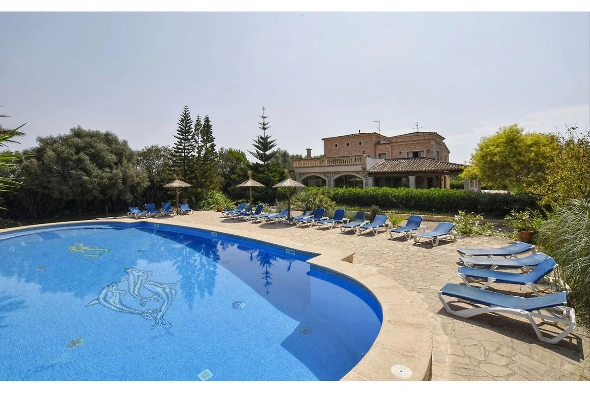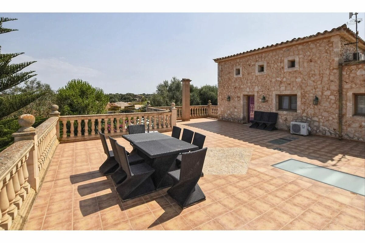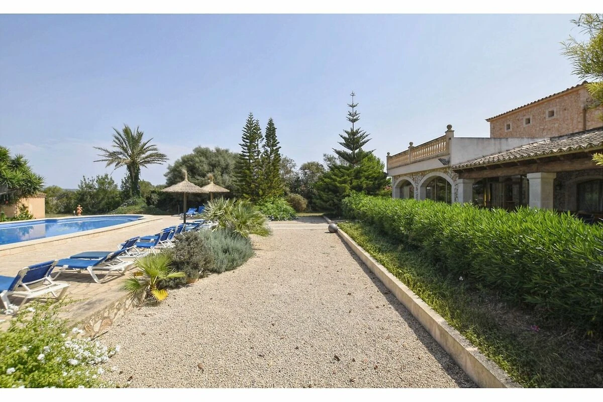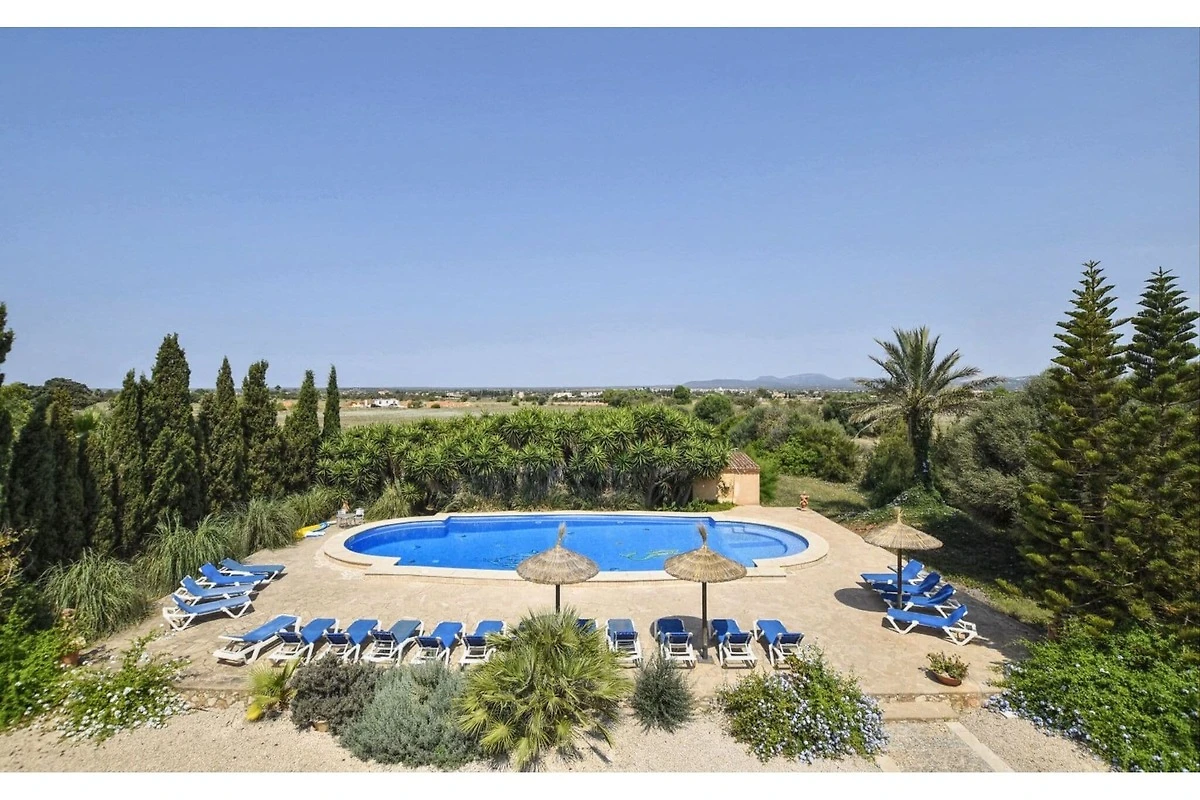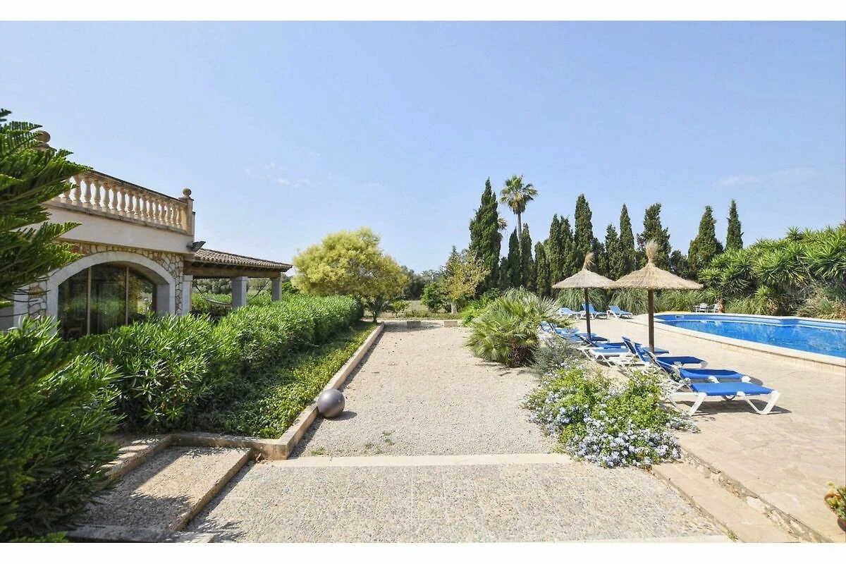 Situata nella tranquilla zona di Campos, questa spaziosa casa offre un elegante equilibrio tra il fascino tradizionale dell'isola e i comfort moderni. Con sette camere da letto, cinque bagni e ampi spazi comuni, la proprietà è progettata per famiglie e gruppi che desiderano rilassarsi con stile. Le ampie finestre del soggiorno incorniciano una vista mozzafiato sulla campagna, mentre terrazze, una piscina privata e una palestra completano l'esperienza. Arredi scelti con cura e dettagli curati creano un'atmosfera invitante in ogni ambiente.