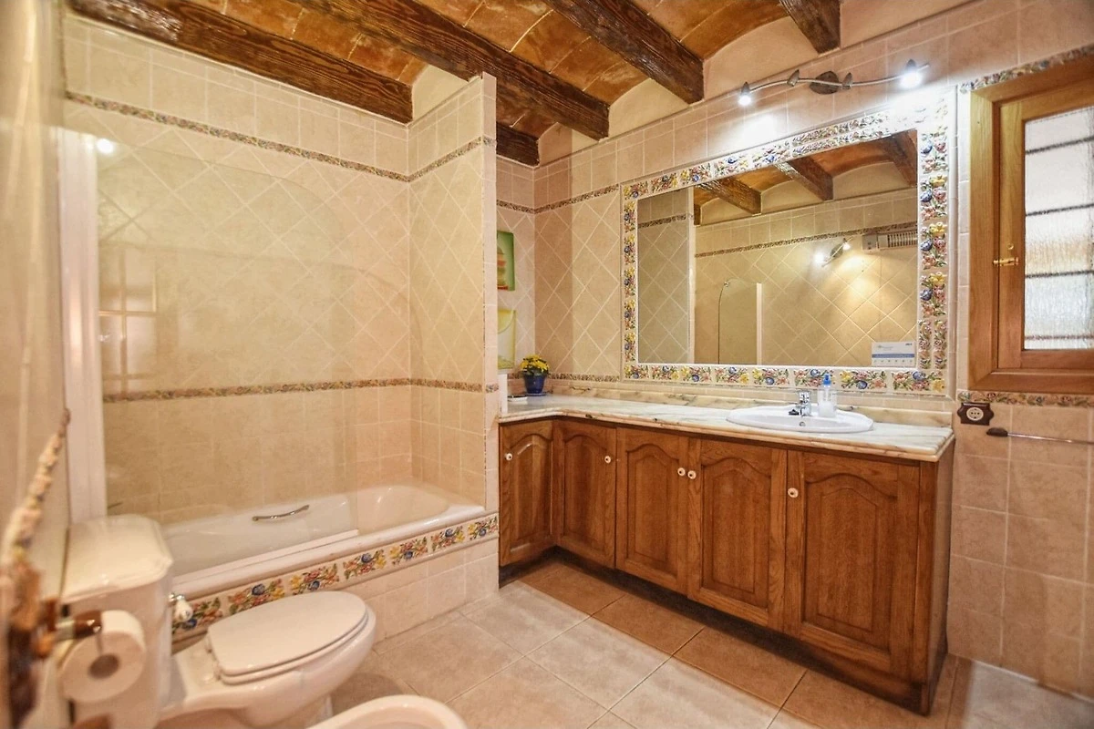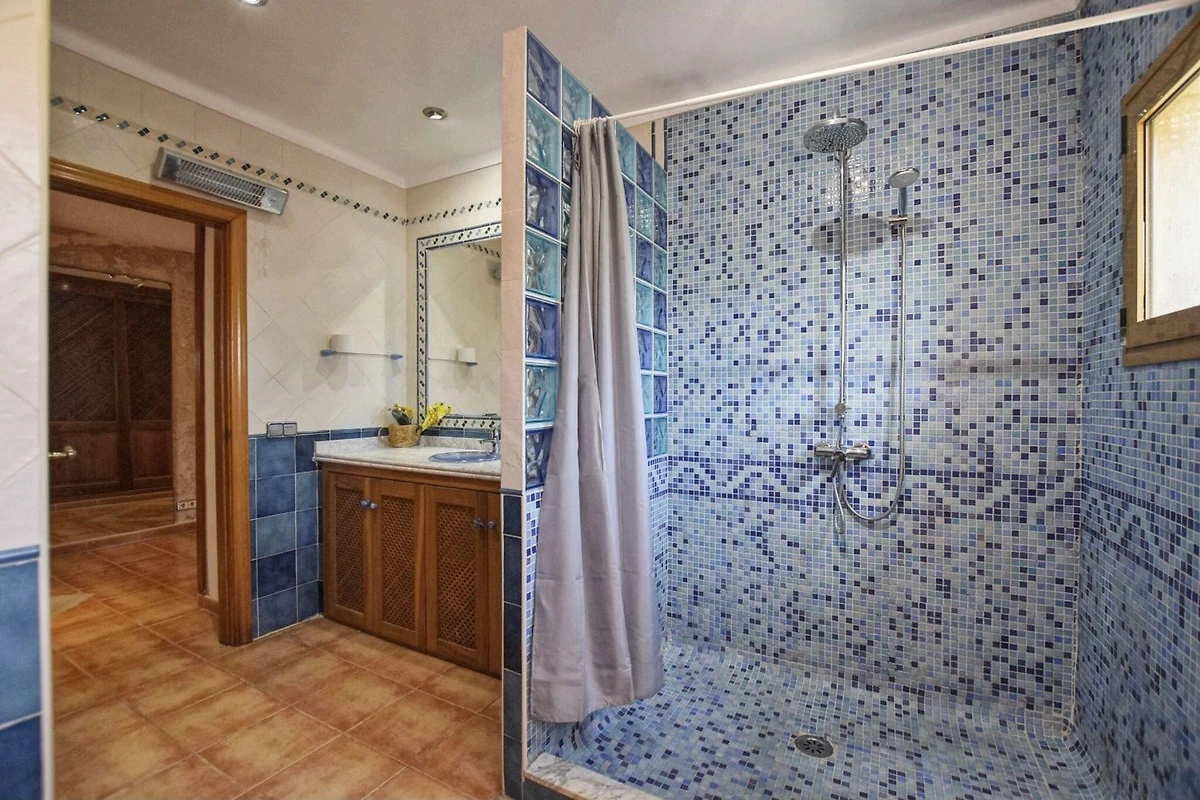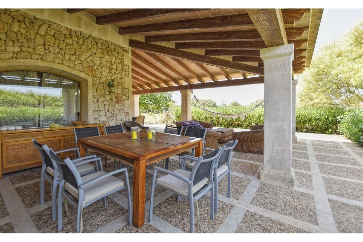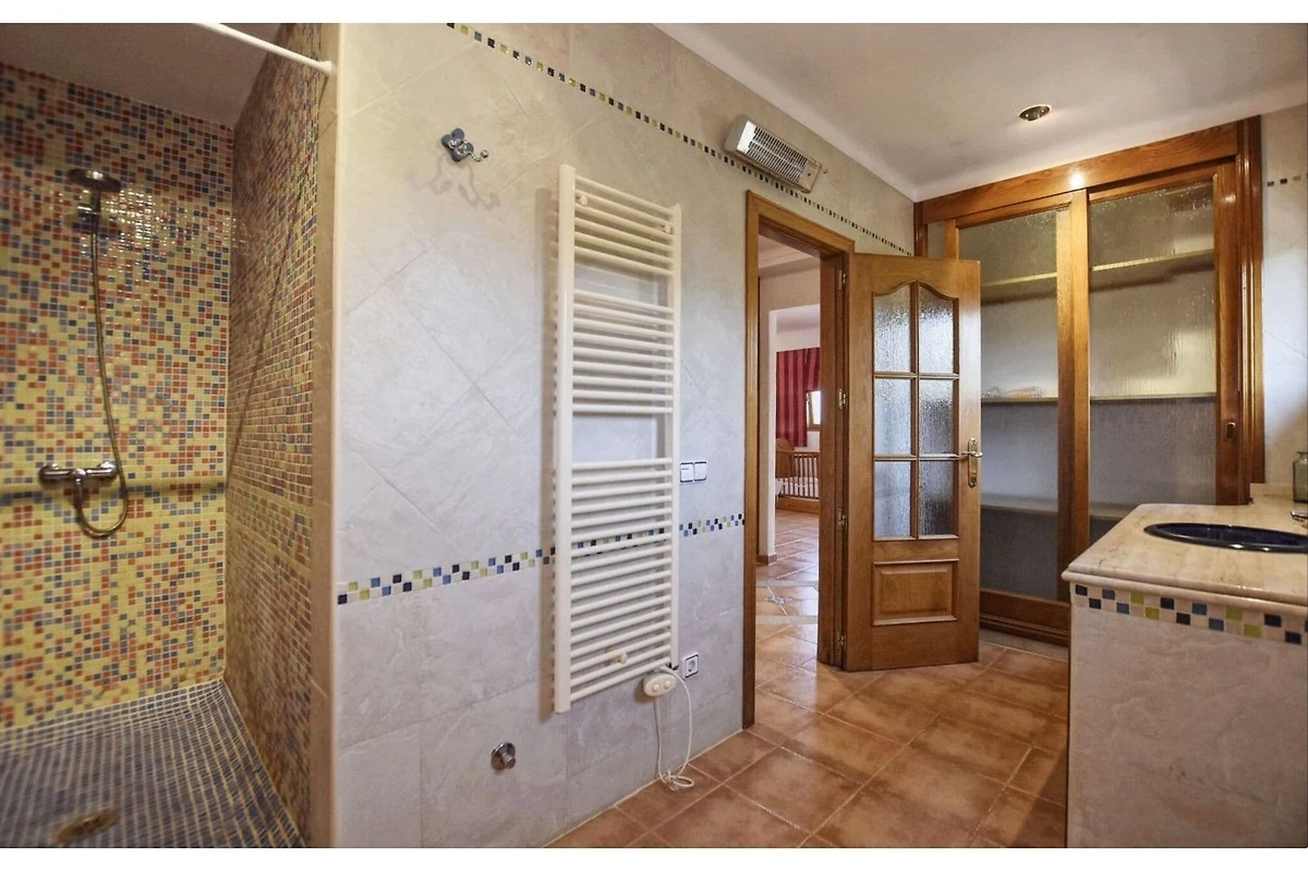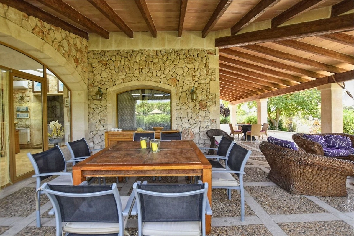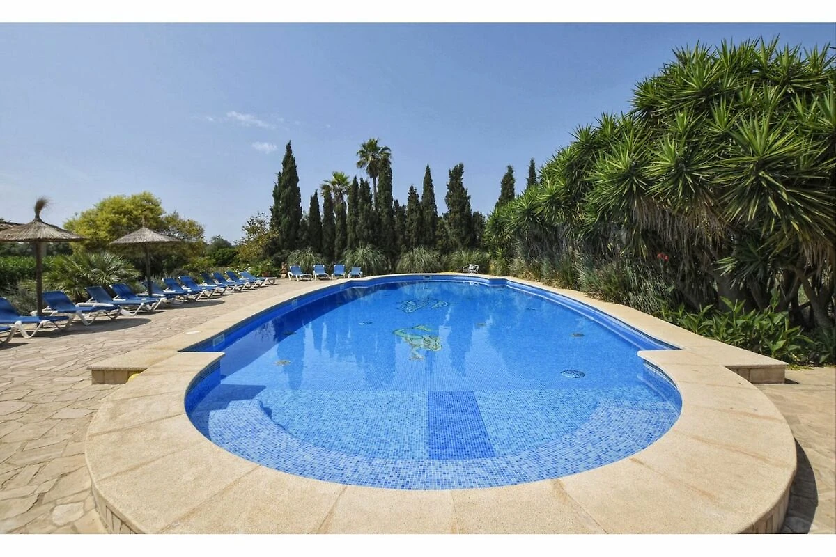 Situata nella tranquilla zona di Campos, questa spaziosa casa offre un elegante equilibrio tra il fascino tradizionale dell'isola e i comfort moderni. Con sette camere da letto, cinque bagni e ampi spazi comuni, la proprietà è progettata per famiglie e gruppi che desiderano rilassarsi con stile. Le ampie finestre del soggiorno incorniciano una vista mozzafiato sulla campagna, mentre terrazze, una piscina privata e una palestra completano l'esperienza. Arredi scelti con cura e dettagli curati creano un'atmosfera invitante in ogni ambiente.