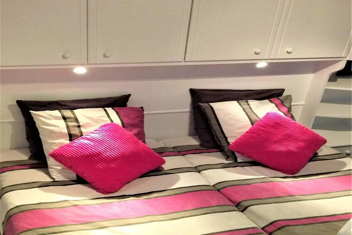 Pianterreno: (Angolo cottura(bollitore, mobile cucina(4 fuochi), caffettiera, forno, forno a microonde, lavastoviglie, frigo con congelatore), Soggiorno / Pranzo(TV, tavolo da pranzo(6 persone), aria condizionata, terrazza), Camera da letto(letto matrimoniale(160 x 200 cm), aria condizionata), Camera da letto(2x letto singolo(90 x 200 cm), aria condizionata), Camera da letto con bagno(letto matrimoniale(160 x 200 cm), vasca, lavandino, WC, 2x aria condizionata), Bagno(doccia, lavandino, WC))