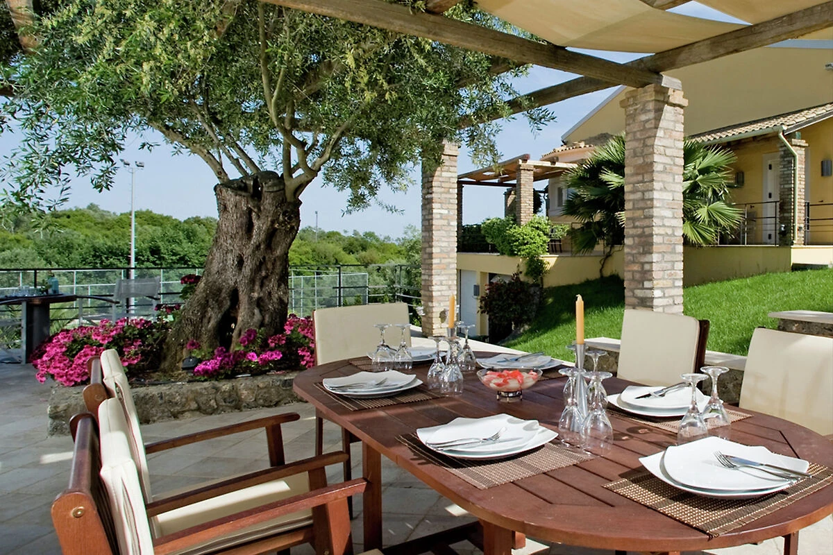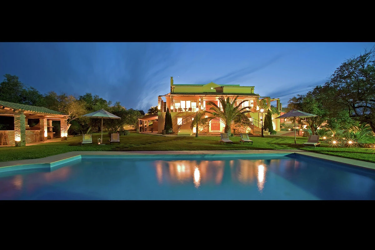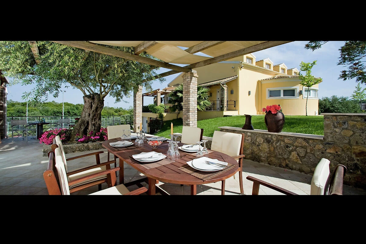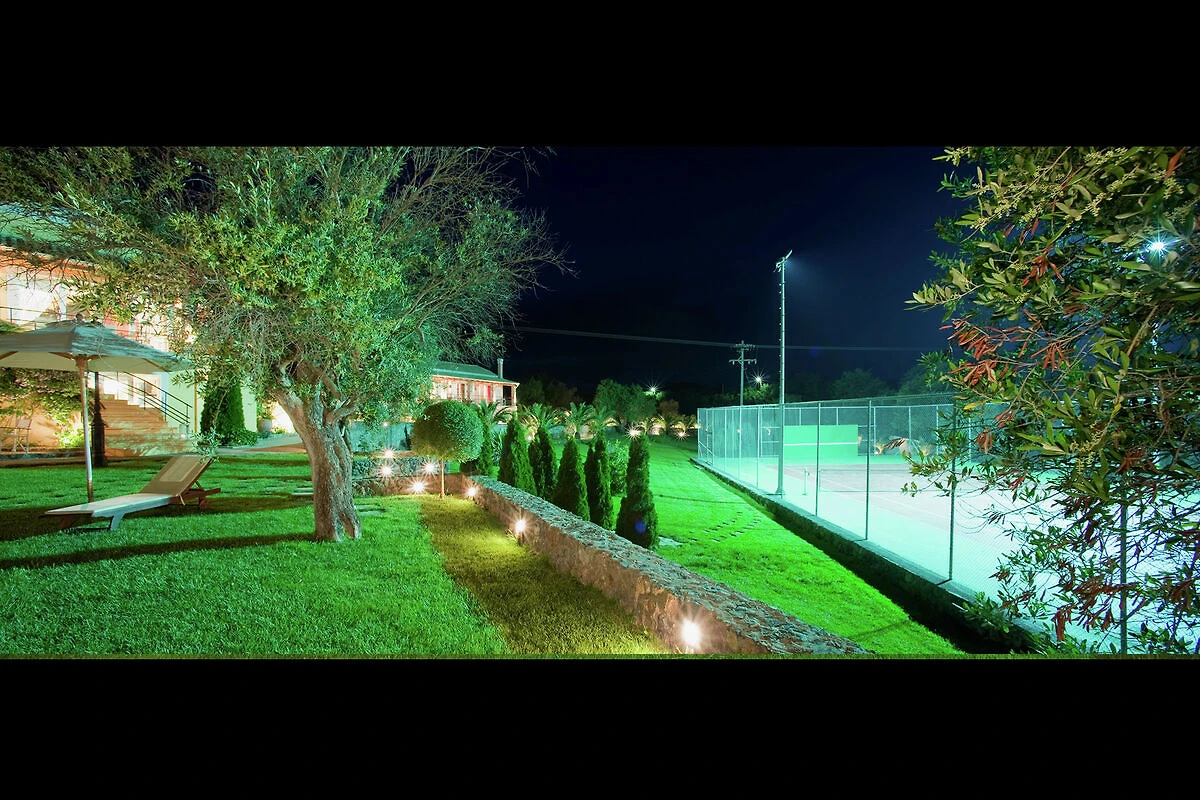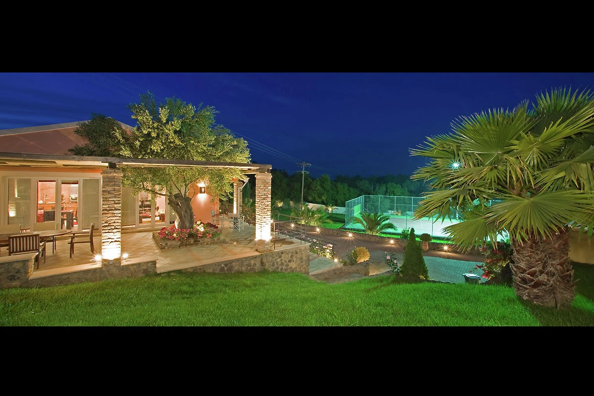 Villa "Classic" è situata su una lussureggiante collina verde vicino al tradizionale villaggio di Danillia. Costruita nel 2004, questa villa dal design accattivante offre viste panoramiche sulla città di Corfù ed è circondata da 5 ettari di terreno erboso. Un vialetto privato conduce al garage, seguito da una scalinata che conduce alla grande piscina e al campo da tennis. La proprietà è protetta da un sistema di 16 telecamere e dispone di un ascensore in vetro trasparente che collega il garage al primo piano.