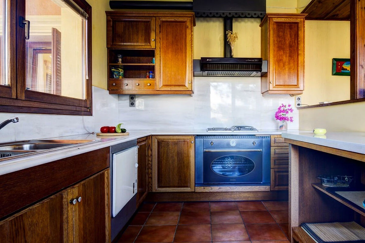 La villa era perfetta per il nostro gruppo, Aveva tutto ciò di cui avevamo bisogno, incluso un seggiolone per il piccolo, Abbiamo apprezzato l'aria condizionata durante le giornate calde, Le taverne vicine offrivano cibo delizioso, e ci siamo divertiti molto a esplorare la zona locale.