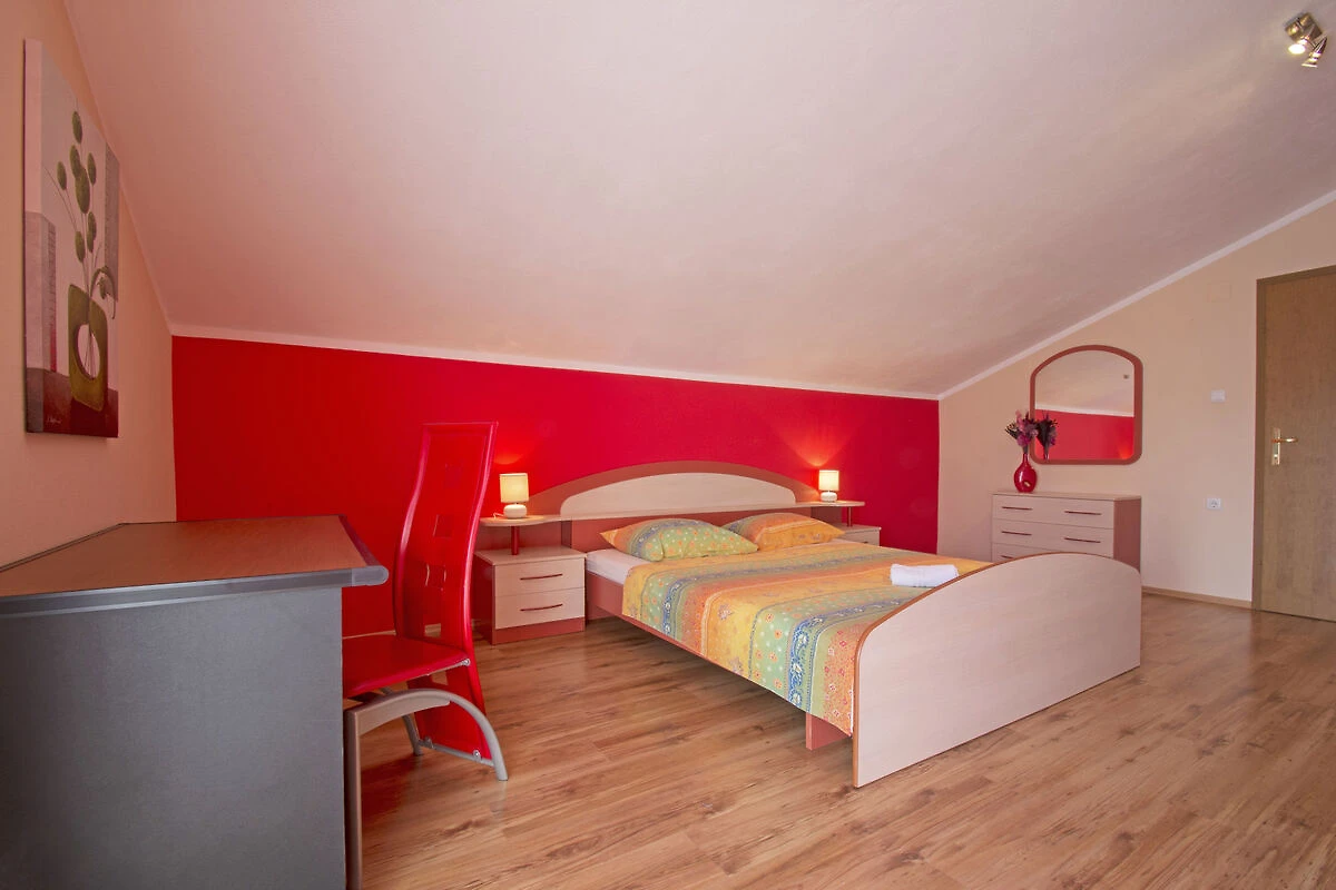 Al 1° piano: (Camera da letto(letto matrimoniale), Camera da letto(letto matrimoniale), Camera da letto(2x letto singolo), Bagno(doccia, lavandino, WC), balcone)