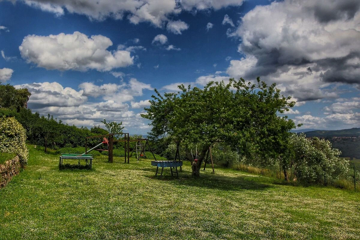 Dopo un lungo viaggio in auto, siamo arrivati alla destinazione attraverso una ripida strada sterrata. Subito meravigliosamente bello. E silenzioso.. antichi edifici splendidamente mantenuti si trovavano tra i vigneti e gli ulivi in attesa dei vacanzieri. L'accoglienza è stata molto cordiale. Con un po' di inglese e un po' di italiano siamo stati accolti nella degustazione di vini per organizzare la burocrazia. Appena arrivati in casa siamo rimasti sorpresi dall'atmosfera accogliente delle camere. Tutte in stile antico, dai paralumi con i volant ai robusti armadi e ai letti di legno massiccio. Piastrelle al pavimento e persiane a tutte le finestre. Un soggiorno delizioso durante la nostra vacanza. All'esterno avevamo un pezzo di giardino privato con un barbecue, un tavolo da pranzo e comode sedie da cui potevamo ammirare l'impressionante valle. Gli addetti (Simona e Laura) erano sempre gentili e disponibili. Vincenzo non si tirava indietro nel riparare i difetti ed era anche un ottimo autista per portare i nostri figli alla stazione per il viaggio di ritorno. Il vino fatto da questa famiglia Montozzi è delizioso! Tutto sommato la nostra vacanza è stata un periodo molto piacevole, con escursioni ad Arezzo, Siena, Firenze, Laterina (villaggio medievale) e siamo riusciti a fare jogging intorno alla località (molto dislivello) quindi non ci si annoia. Il lusso più grande? La deliziosa piscina con lettini intorno, ombrelloni e posti all'ombra. E naturalmente il calcio balilla e il tavolo da ping-pong. Grazie!