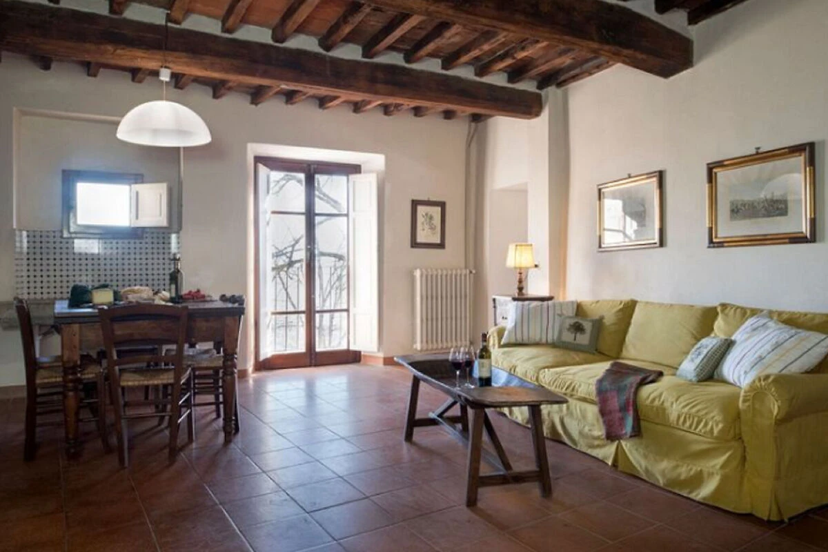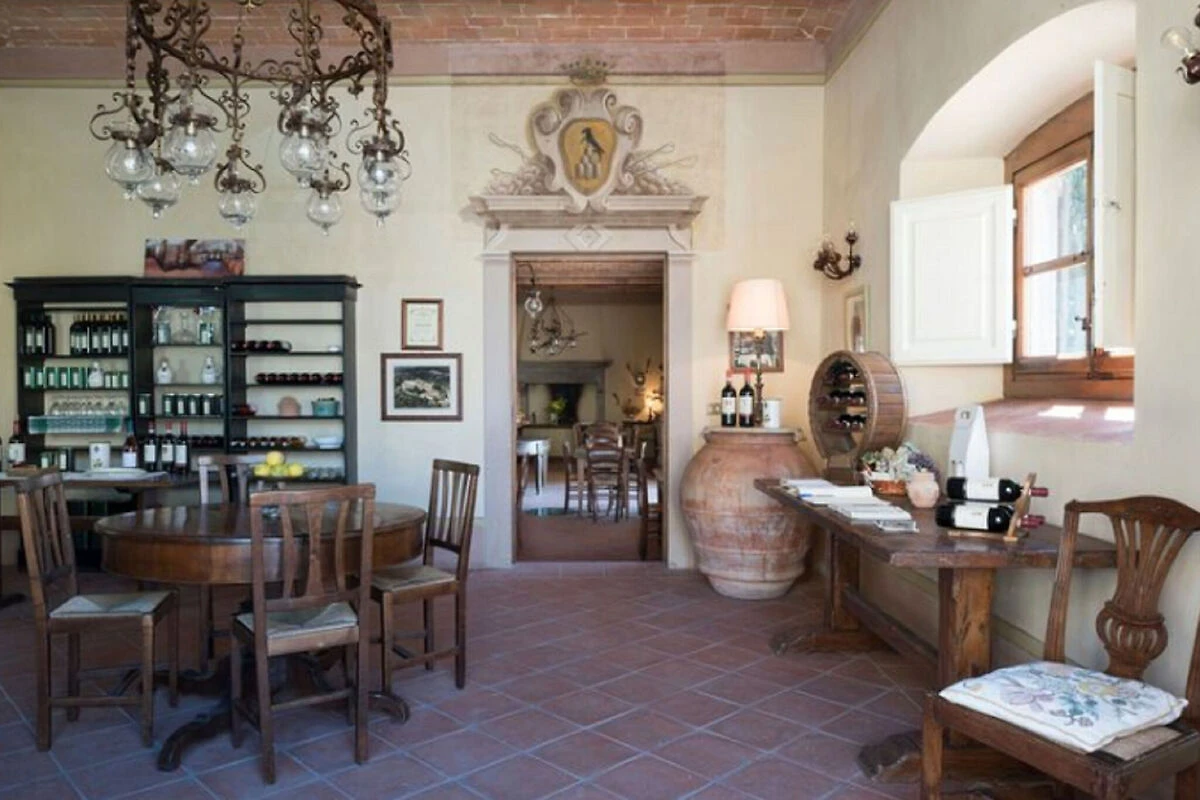 L'appartamento è situato al primo piano con un ambiente tipico toscano. Le mantelli di pietra, soffitti con travi con travi in "U+200B""U+200B" legno robusto, pavimenti in terracotta e i grandi caminetti tutti aggiungono all'atmosfera autentica. I mobili abbinati completano l'immagine. All'esterno, il giardino privato adiacente alla casa è un posto meraviglioso per godersi un pasto toscano o godersi la splendida vista sulla tenuta. I bambini adoreranno giocare in giardino, mentre i loro genitori si raffreddano nella piscina comunale.