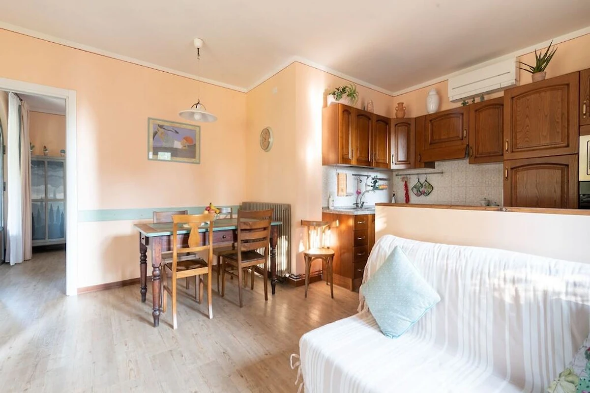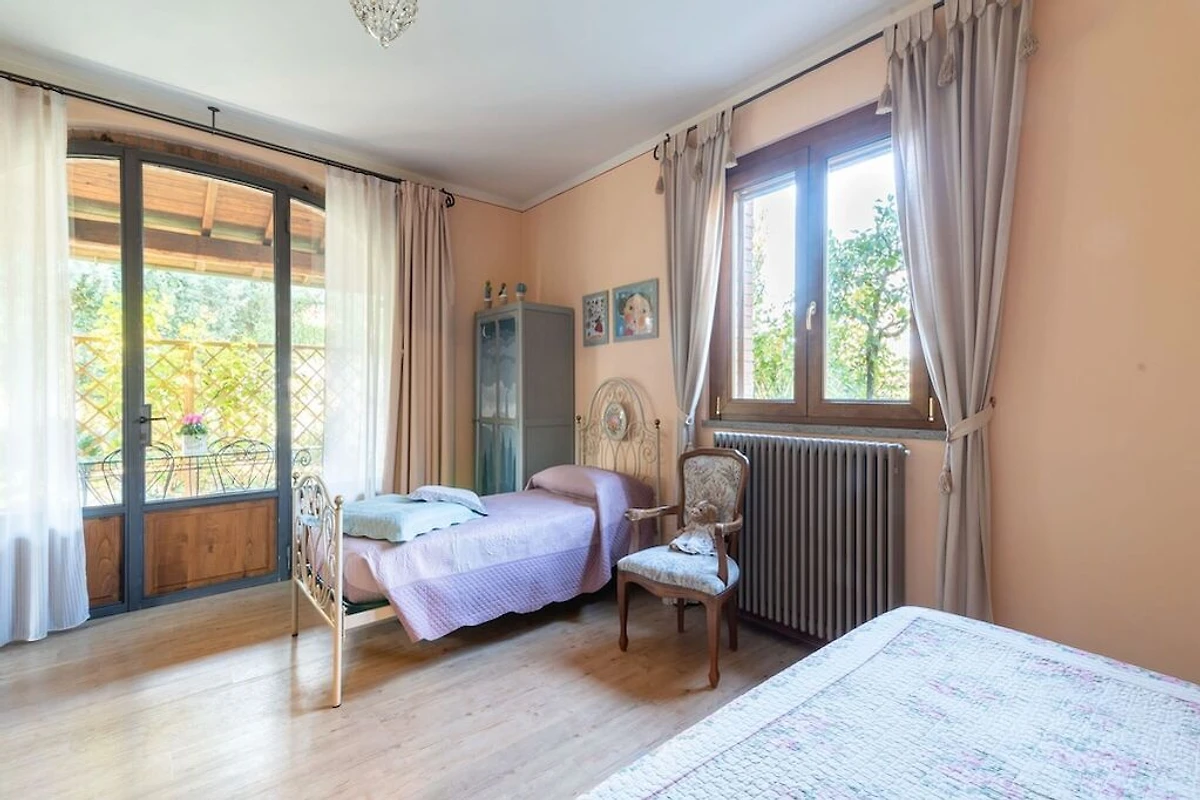 Bellissimo ambiente, caloroso benvenuto da una famiglia accogliente che è benedetta con una bella tenuta. Il primo giorno abbiamo ricevuto una torta fatta in casa e il secondo giorno pomodori dal loro giardino. Città culturali famose sono raggiungibili abbastanza facilmente con l'auto. Ma è anche possibile viaggiare bene in treno. Tuttavia, ci sono anche alcuni aspetti negativi: 1. Ci sono un sacco di zanzare tigre nel giardino. Sarebbe stato bello se fossimo stati informati in anticipo considerando la mia gravidanza. 2. Se cerchi molta privacy, questa casa non è adatta. Si trova sulla proprietà del proprietario, quindi c'è molta attività intorno alla casa vacanze tra i residenti e gli animali domestici. 3. La casa non ha una lavatrice, ma fortunatamente ci sono abbastanza lavanderie ad Arezzo.