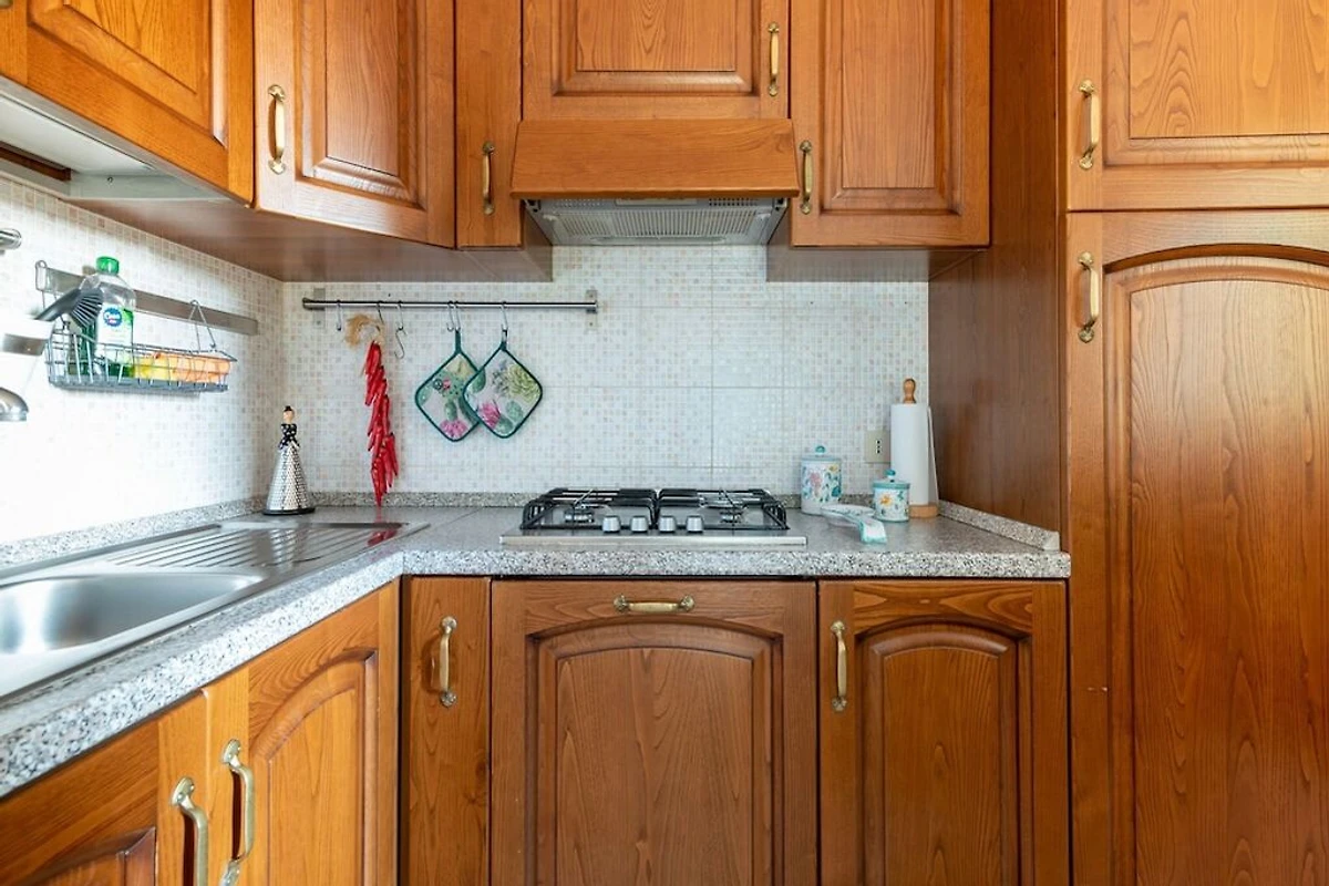 Un caloroso benvenuto da parte del proprietario che parla inglese. Frutta fresca nella ciotola dei frutti. Così come bottiglie d'acqua in frigo. La sera siamo stati sorpresi dalla nonna con la pasta alla carbonara. Il giorno seguente una torta di mele fatta in casa con limoncello. Un altro giorno abbiamo ricevuto polpette fritte all'olio. Delizioso! Questo proprietario fa di tutto per far sentire a proprio agio gli ospiti. Come extra abbiamo ricevuto una bottiglia di olio d'oliva biologico del proprio azienda. Questa location è da consigliare.
