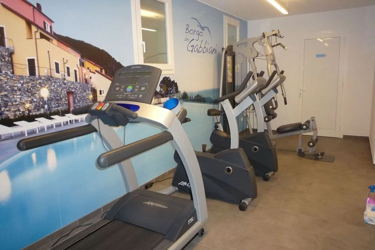 Pianterreno: (Salotto(divano letto doppio), Cucina abitabile(mobile cucina(4 fuochi, gas), caffettiera, forno, lavastoviglie, frigorifero), Camera da letto(letto matrimoniale), Bagno(doccia massaggio, lavandino, WC, lavatrice), stanza fitness(in comune con altri ospiti), sauna(in comune con altri ospiti), bagno turco(in comune con altri ospiti), vasca idromassaggio(in comune con altri ospiti), garage, riscaldamento, aria condizionata, terrazza(privato), mobili da giardino, parcheggio, piscina(in comune con altri ospiti, riscaldabile, aperta da 1/2 Giu fino a Ago compreso), giochi per bambini(in comune con altri ospiti), tavolo da ping pong(in comune con altri ospiti))