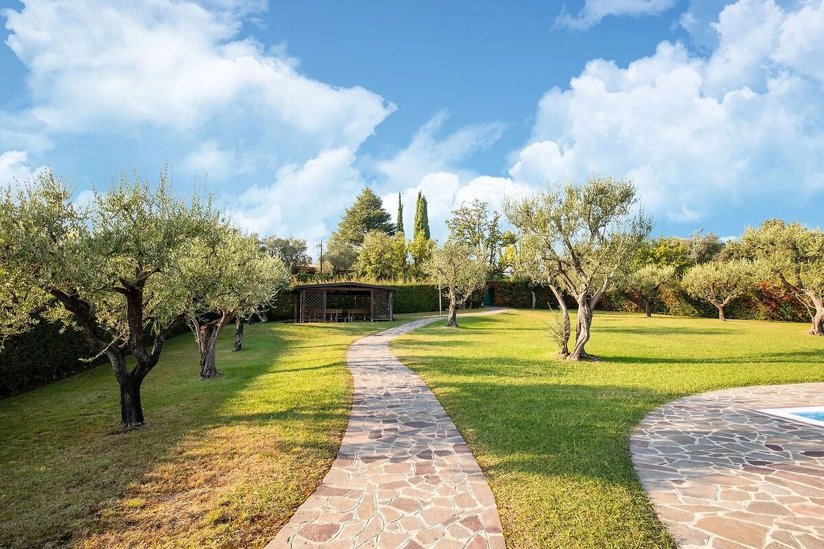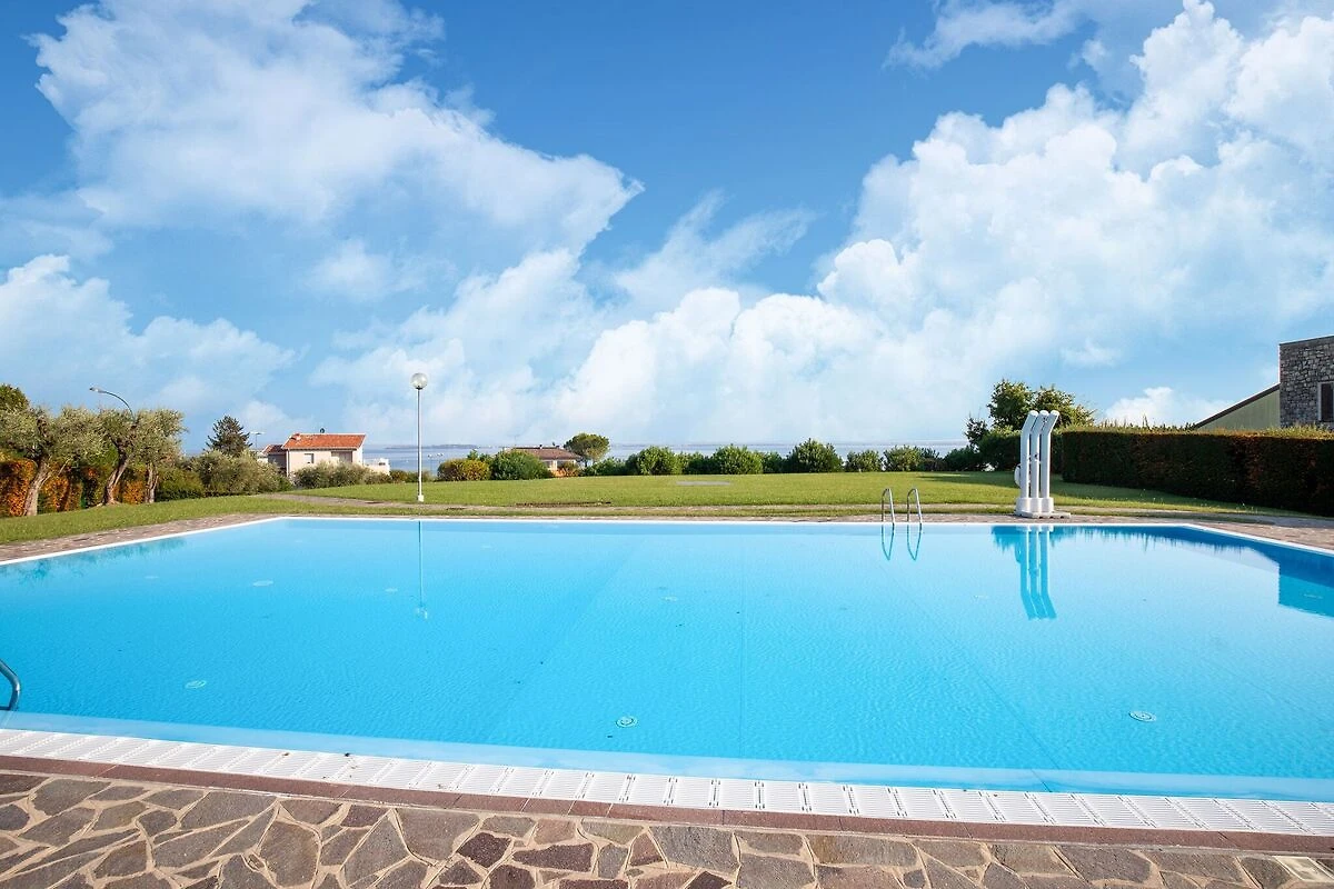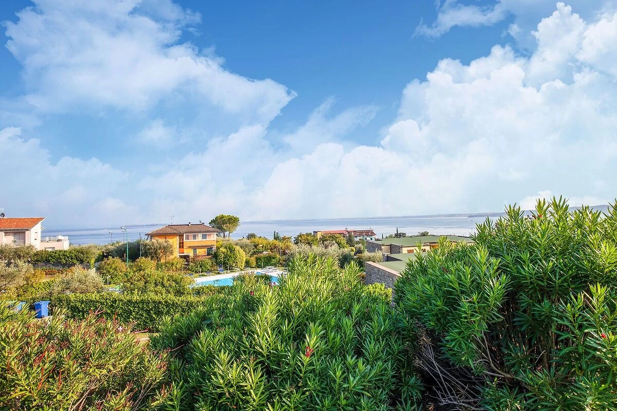 Villetta a schiera con giardino privato e piscina in comune, con vista lago. La casa vacanza è situata in un piccolo residence di 17 villette, sulla sponda sud-ovest del Lago di Garda. Dal giardino si ha una bellissima vista sul lago ed è ideale per pranzare o cenare all'aperto. L'ampio giardino comune e la piscina sono ideali per rinfrescarsi e godere la vista sul Lago di Garda. Si raggiunge il Lago di Garda in 5 minuti a piedi tramite un sentiero (non asfaltato).