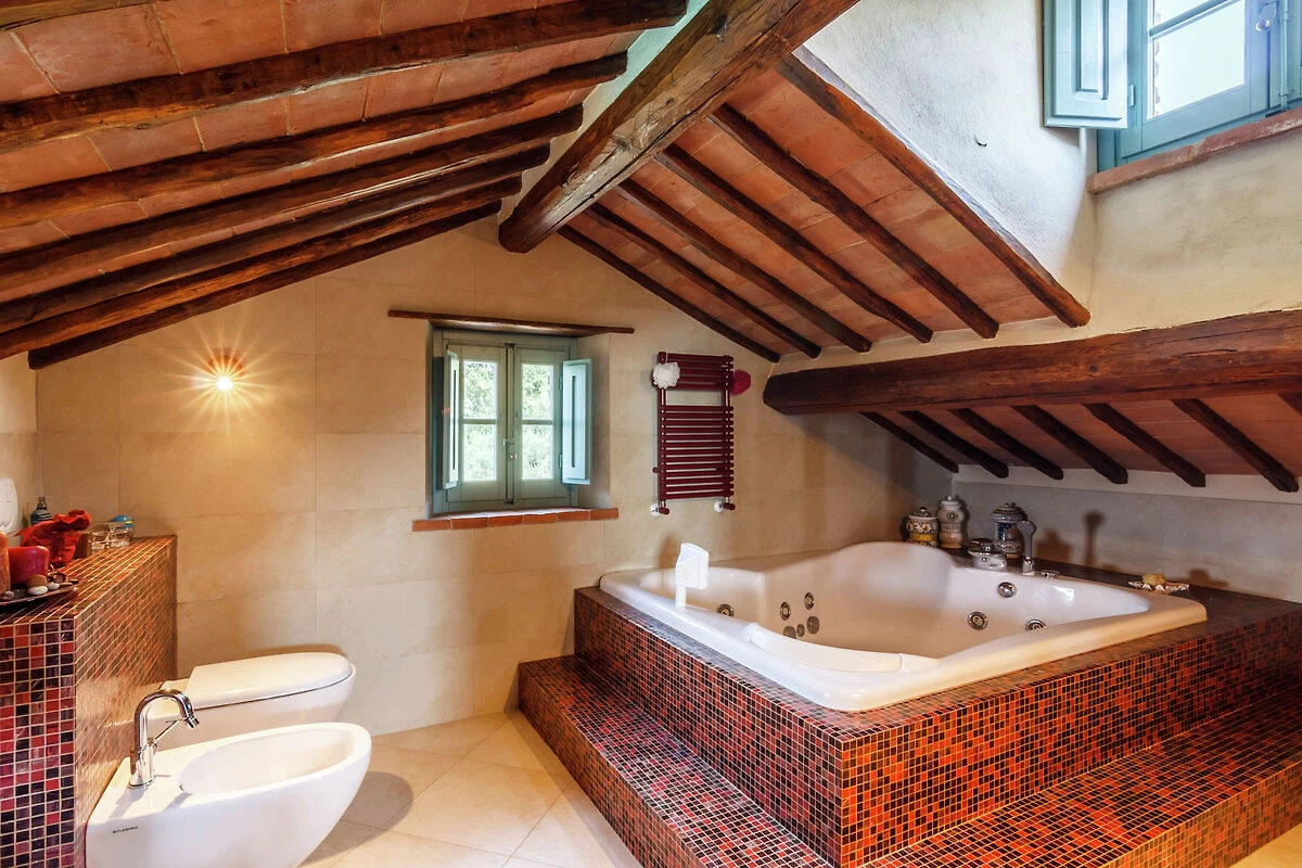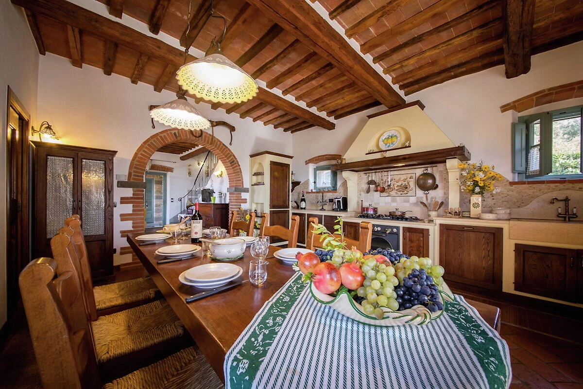 All'esterno, gli ospiti possono rilassarsi sulla terrazza privata o nel giardino splendidamente illuminato, completo di mobili da giardino e barbecue per pranzi e cene all'aperto. La piscina privata (8 x 4 m), aperta da maggio a settembre, promette ore di relax sotto il sole della Toscana. Dotata di parcheggio privato e servizi essenziali come lavatrice e riscaldamento inclusi, questa villa è una meta perfetta per tutto l'anno per chi desidera esplorare la campagna toscana con tutti i comfort di casa.