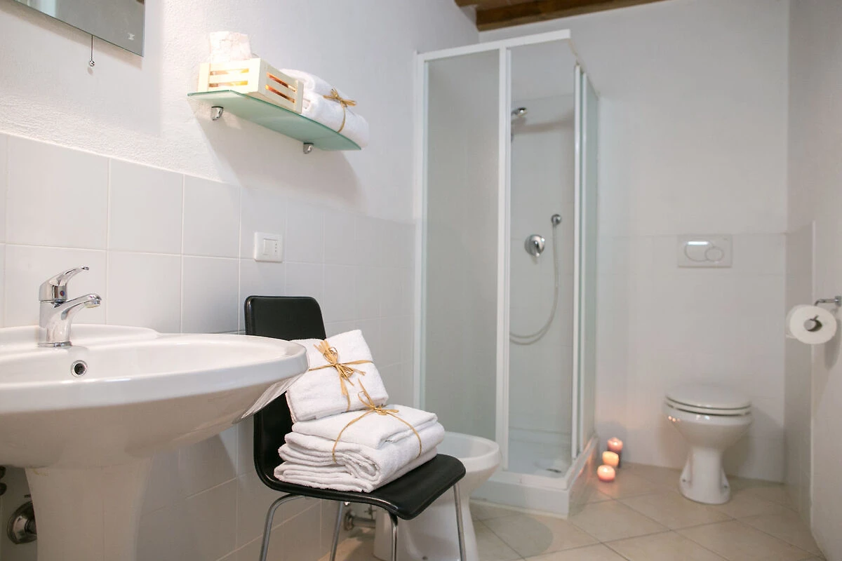 Soffitta: (Camera da letto con bagno(letto matrimoniale, doccia, lavandino, WC, bidet))