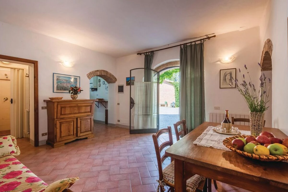 Immerso tra le dolci colline di San Gimignano, questo grazioso casale con una camera da letto è perfetto per una famiglia o un gruppo di 4 persone. Circondato da vigneti e uliveti, offre una piscina in comune, una terrazza privata e giardini sia in comune che privati, ideali per sorseggiare la Vernaccia sotto il sole della Toscana. La tranquilla campagna circostante dista solo 4 km da negozi, ristoranti e un delizioso panificio locale.