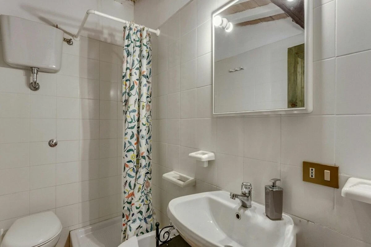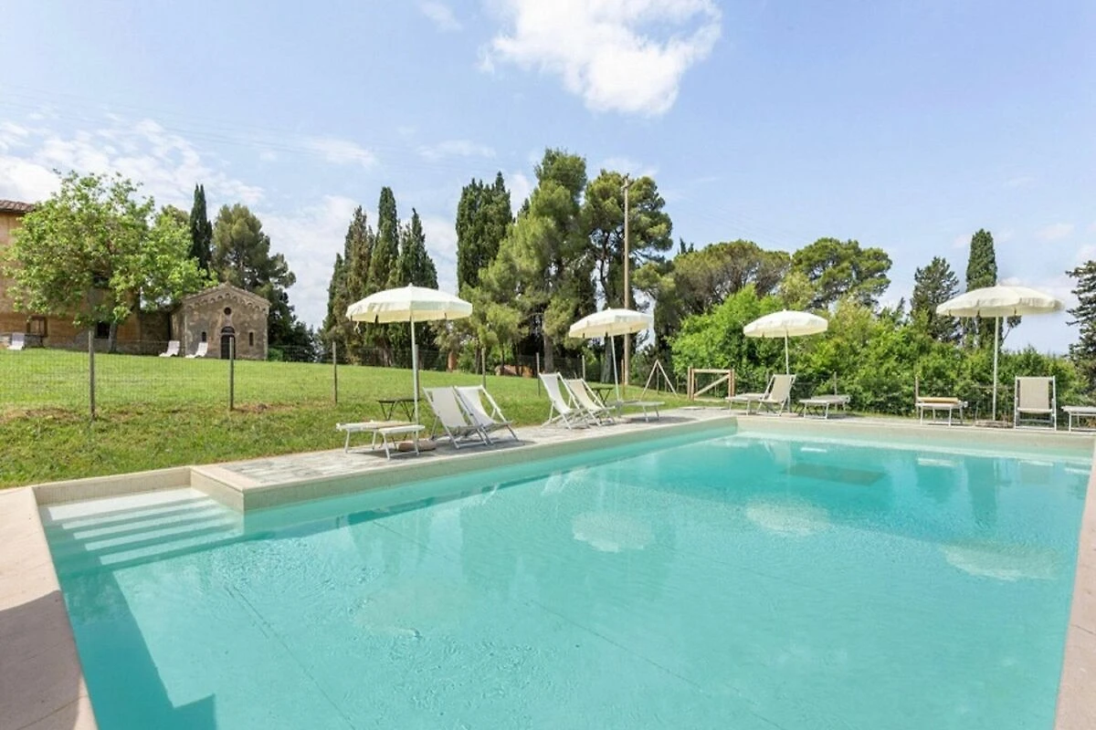 Una tariffa opzionale per servizi e utenze di EUR 30,00 verrà addebitata prima del vostro arrivo. I dettagli sono forniti di seguito. Il complesso colonico Scornello si trova nel tipico paesaggio collinare toscano e vicino alla bella città di Volterra. Il complesso è costituito da una villa e un piccolo gruppo di 4 appartamenti annessi. Gli ospiti possono godere del giardino comune, piscina e barbecue. Dal borgo di ha una spledida vista sui panorami di Volterra, la città domina il paesaggio. Gli appartamenti si trovano alla fine di un percorso di 4 km sterrato. La parte finale (500 metri) è un viale di secolari cipressi. L'arredamento è tipicamente toscano: è rustico e accogliente con piastrelle e travi in legno. Il complesso colonico è su un terreno di 340 ettari e il parco ospita campi di grano, prati, boschi e uliveti. La posizione è tranquilla, quasi isolata e quindi ottima per passeggiate a piedi, in bicicletta e per rilassarsi. Volterra, San Gimignano e Siena sono altamente raccomandate per piacevoli gite di un giorno. Pacchetto opzionale utenze & servizi Un pacchetto opzionale di utenze e servizi dal valore di EUR 30,00 può essere selezionato prima del vostro arrivo. Riceverete una comunicazione separata con il link di pagamento qualora vogliate aggiungerlo.Questo pacchetto garantisce un soggiorno senza pensieri e copre comodamente servizi come pulizia finale, consumo delle utenze, assistenza e protezione contro piccoli danni o costi imprevisti durante il soggiorno.Ospiti che lo preferiscono possono gestire questi servizi autonomamente, purché la proprietà sia restituita in buone condizioni al check-out.