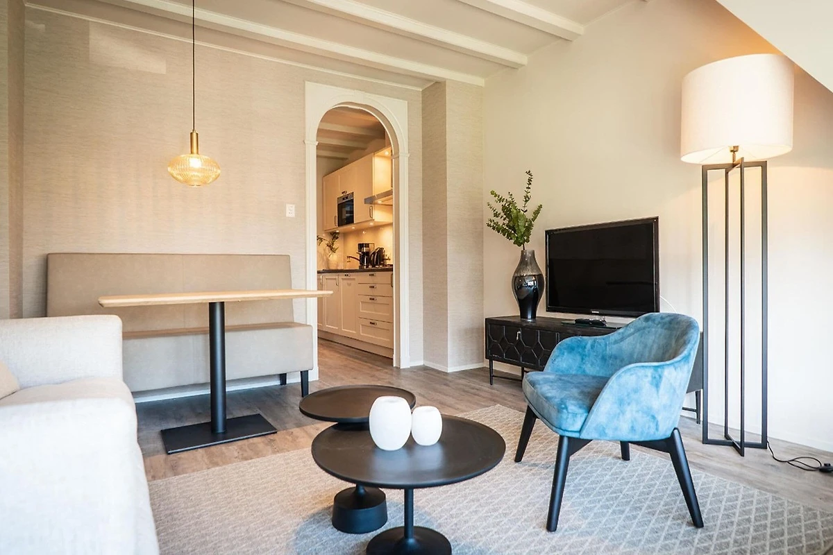 De Hollandhoeve è una splendida location con appartamenti molto ben arredati. L'appartamento per due persone che abbiamo occupato al primo piano è estremamente grande con un'ampia area soggiorno e camera da letto. La cucina è ben fornita di vari elettrodomestici e utensili di lusso. L'unico svantaggio è che la zona pranzo è collocata in uno spazio intermedio senza vista esterna. Un po' poco accogliente, ma ci siamo creati un'atmosfera piacevole. Forse c'è qualcosa da inventare per posizionare l'angolo pranzo per 2 persone nello spazio abitativo. C'è abbastanza spazio. I letti sono ottimi, ho dormito benissimo in un periodo tempestoso.