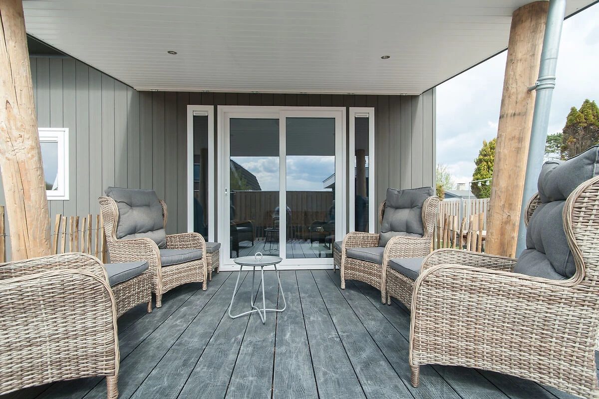 Dieci chalet è tutta l'atmosfera! Super spazioso con grandi finestre che lasciano entrare tutta la luce, La cucina aperta rende cucinare un piacere, e il giardino è ideale per rilassarsi o fare barbecue, Senza scherzi, la veranda coperta è un sogno per incontri serali.