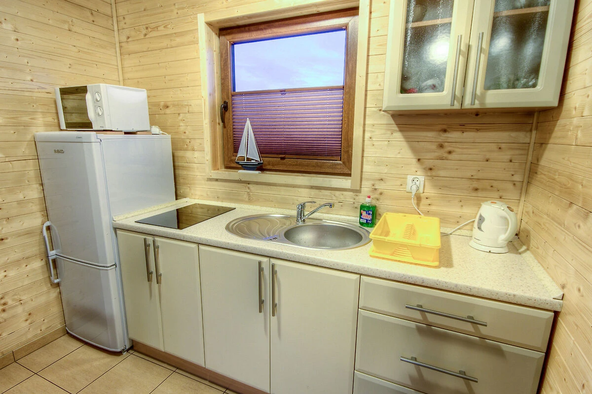 Pianterreno: (Atrio, Salotto(divano letto doppio, TV, tavolo da pranzo), Sala da pranzo(tavolo da pranzo), Cucina separata(bollitore, mobile cucina, caffettiera, forno a microonde, frigo con congelatore), Bagno(doccia, lavandino, WC))