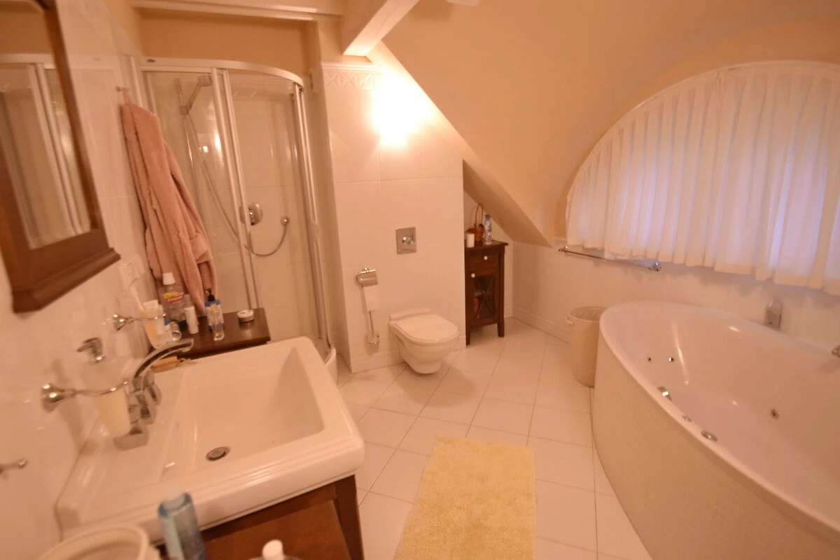 Al 1° piano: (Camera da letto(3x letto singolo), Camera da letto con bagno(letto matrimoniale(180 x 200 cm), vasca idromassaggio, doccia, lavandino, WC), Camera da letto con bagno(letto matrimoniale(180 x 200 cm), TV, vasca, doccia, lavandino, WC), Camera da letto con bagno(letto matrimoniale(180 x 200 cm), TV, vasca, doccia, lavandino, WC))