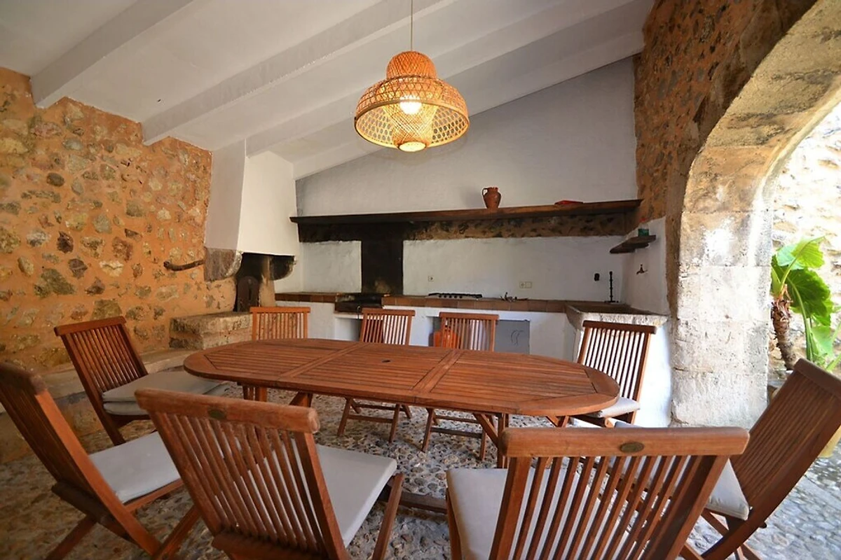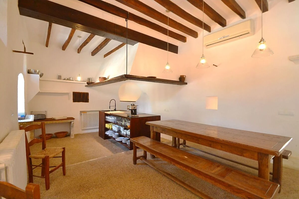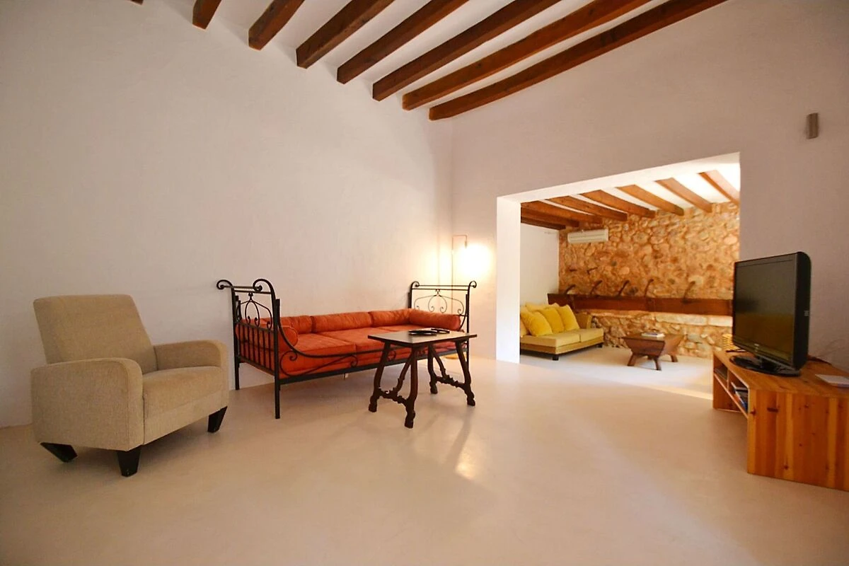 Finca Rafal Antic si trova in un piccolo borgo molto con solo quattro case e gode di completa privacy in combinazione con isolamento totale e serena calma. L'attuale finca è stato accuratamente restaurato negli ultimi dieci anni per ora fornire una casa piena di fascino ambience.Approached naturali dall'ingresso principale al largo della strada di campagna verdeggiante è il bel cortile acciottolato che conduce alla porta di quercia borchiati e archway.The pavimenti ciottoli, pareti di pietra interne, pavimenti in cotto e le travi di quercia aggiungono un vero carattere di questa deliziosa casa colonica. Maiorca doppie porte di legno si aprono in sala d'ingresso, sul retro della quale troviamo la zona pranzo che ha doppie porte si aprono sulla terrazza e piscina zona posteriore. A destra di questa zona troviamo la cucina in stile classico con originale lavello in pietra, forno elettrico \/ piano cottura, lavastoviglie e forno a microonde. Il frigorifero \/ congelatore si trova nella sala da pranzo e la lavatrice nella zona di servizio esterna in piscina. A destra dell'ingresso una porta conduce in due livelli e rinfrescante aperto lounge area soggiorno a pianta, che ha caratteristiche pareti in pietra originali e caminetto decorativo. La connessione internet si trova qui. Una porta conduce in un corridoio; da un lato è un bagno completo showe